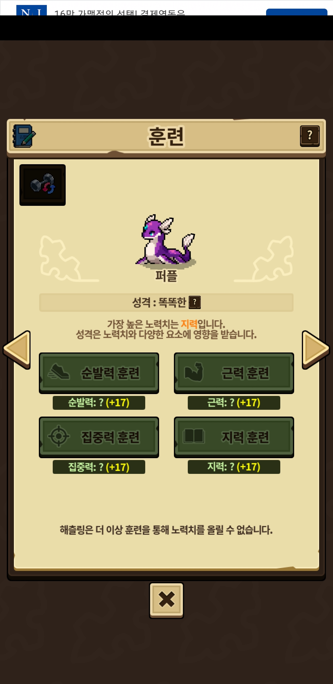 훈련 다 17로 해놓고 돌보기도 다 한 번씩만 해줬는데 왜 안나오져…