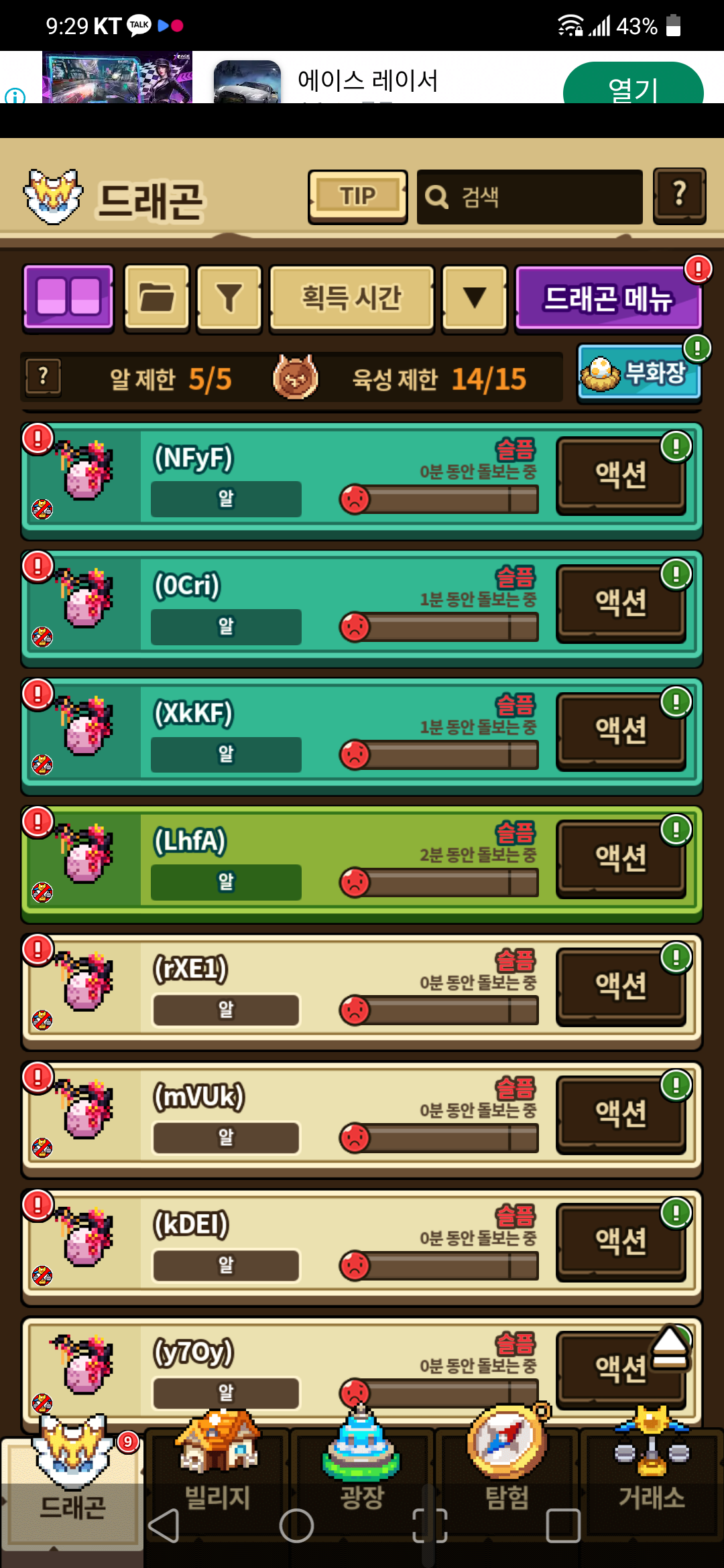 계정 빌리지에 가시면 플루모스 8마리 배치 해놨어요 도감작 하실분은 나중에 하셔요