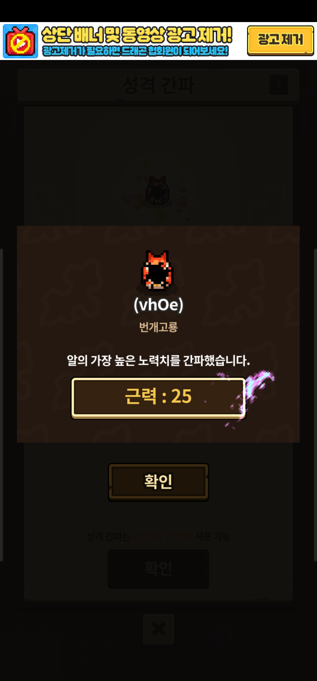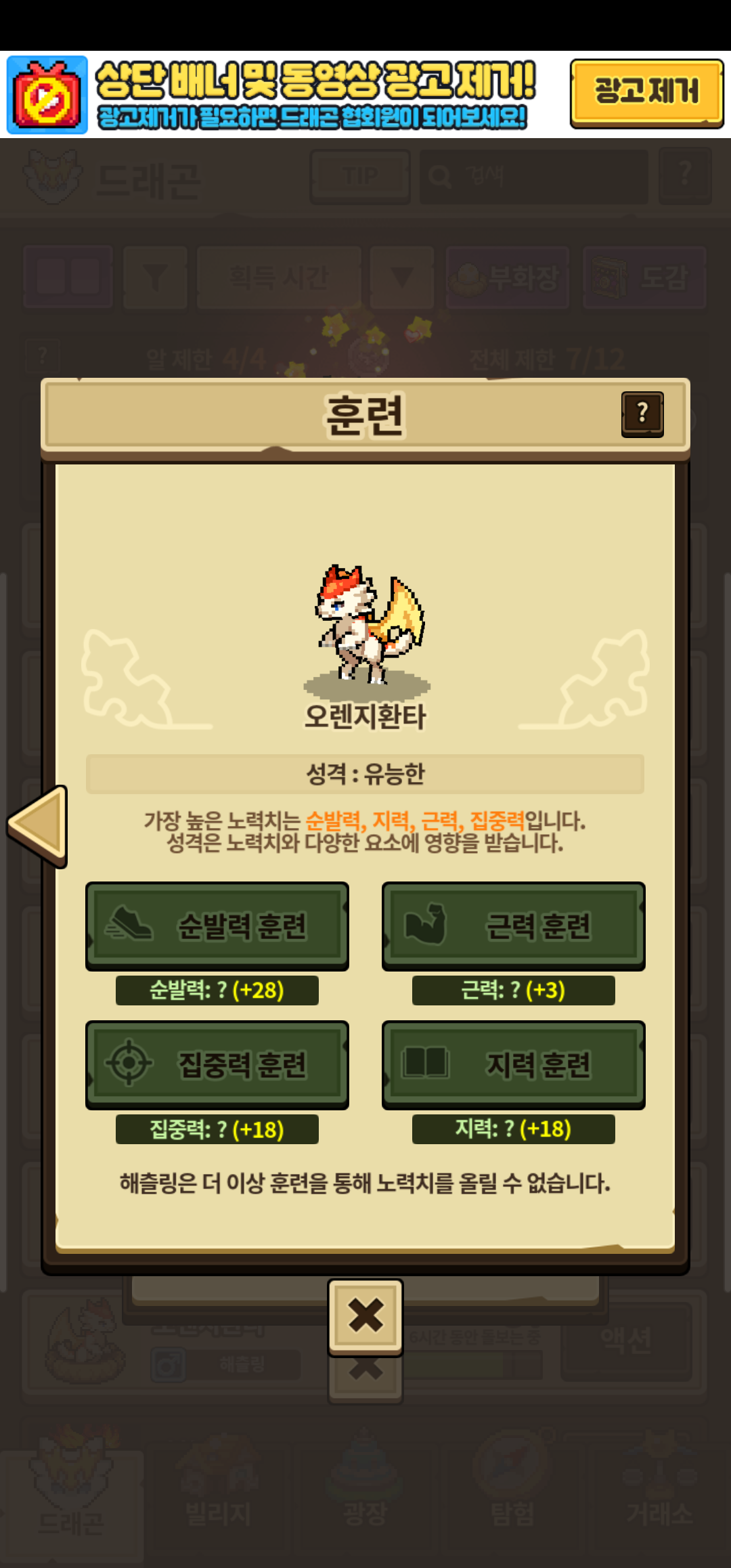 순발력, 근력, 집중력, 지력 훈련했는데 해츨링으로 진화하니까 유능함으로 바뀌었어요!