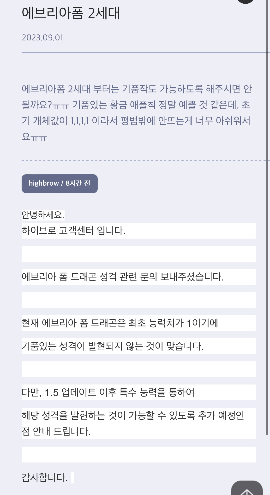 1.5 업데이트, 아마 9월 20일 업데이트 이후 어떤 드래곤의 특수능력을 통해 기품작도 가능해지나 보네요! 기품있는 황금칙 가보자고ㅠㅠㅠ!!!!!!