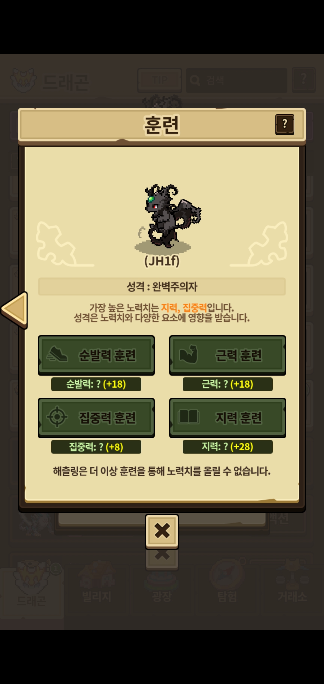 지력 집중력 28, 순발력 근력 23입니다