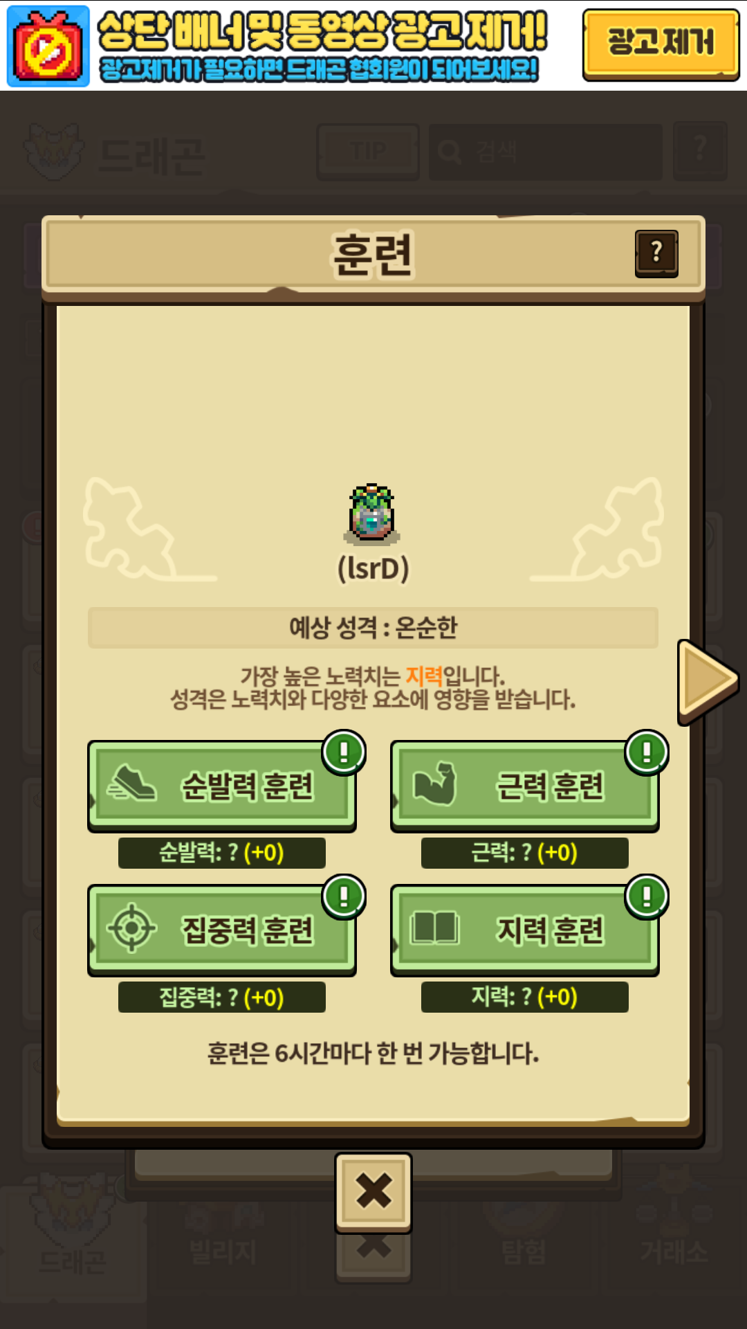 성격 1에 속한, “집중력”이 제일 높은 “차분한” 성격의 스왐프 드래곤만 봤었습니다.