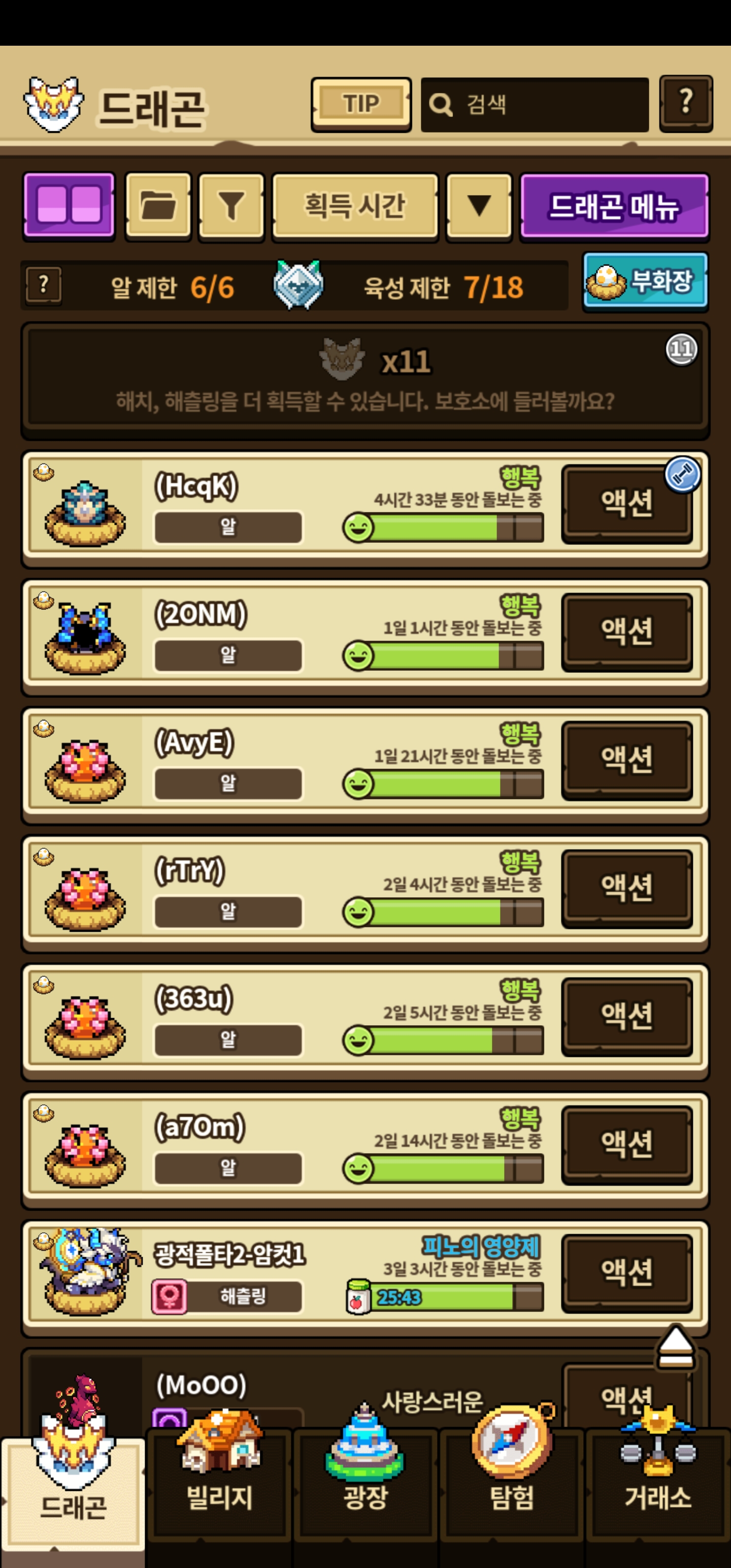 알칸이 없어서... 해츨 한 마리만 키우는 중ㅜ