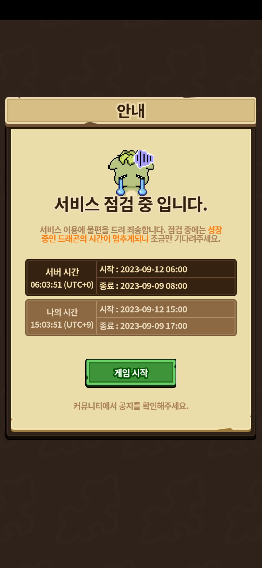 아하 5시까지…. 근데 왜 커뮤니티가 아니고 게임시작이..