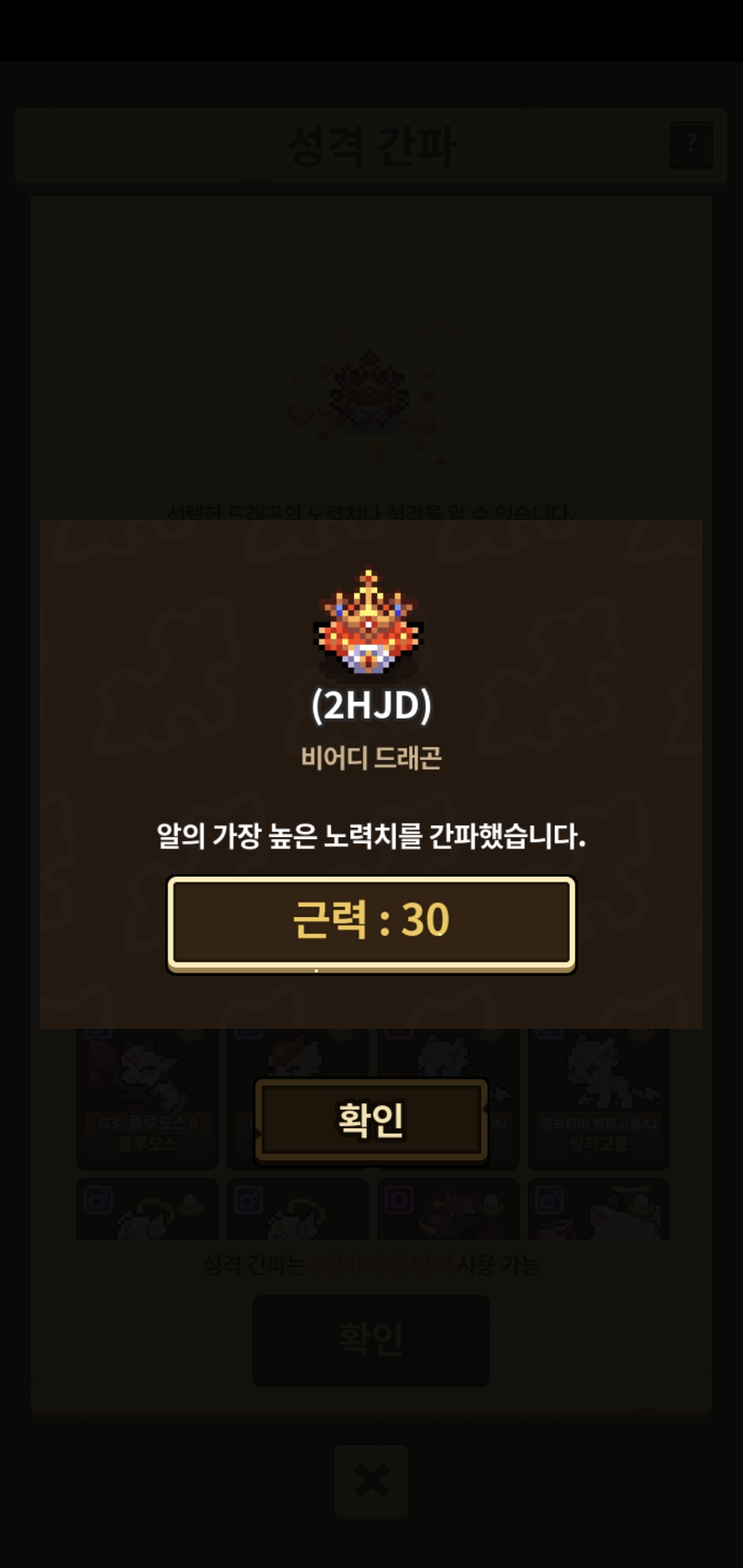 비어디 드래곤도 초기성격 둘 다 최고능력치 30이라 평범오라는 물건너갔네요😂