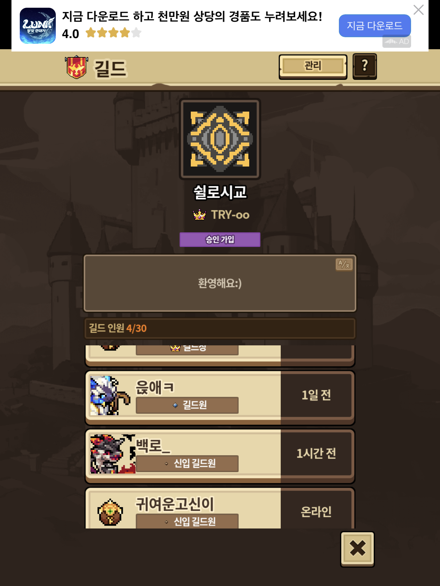 [쉴로시교] 길드에서 길드원을 모집합니다!