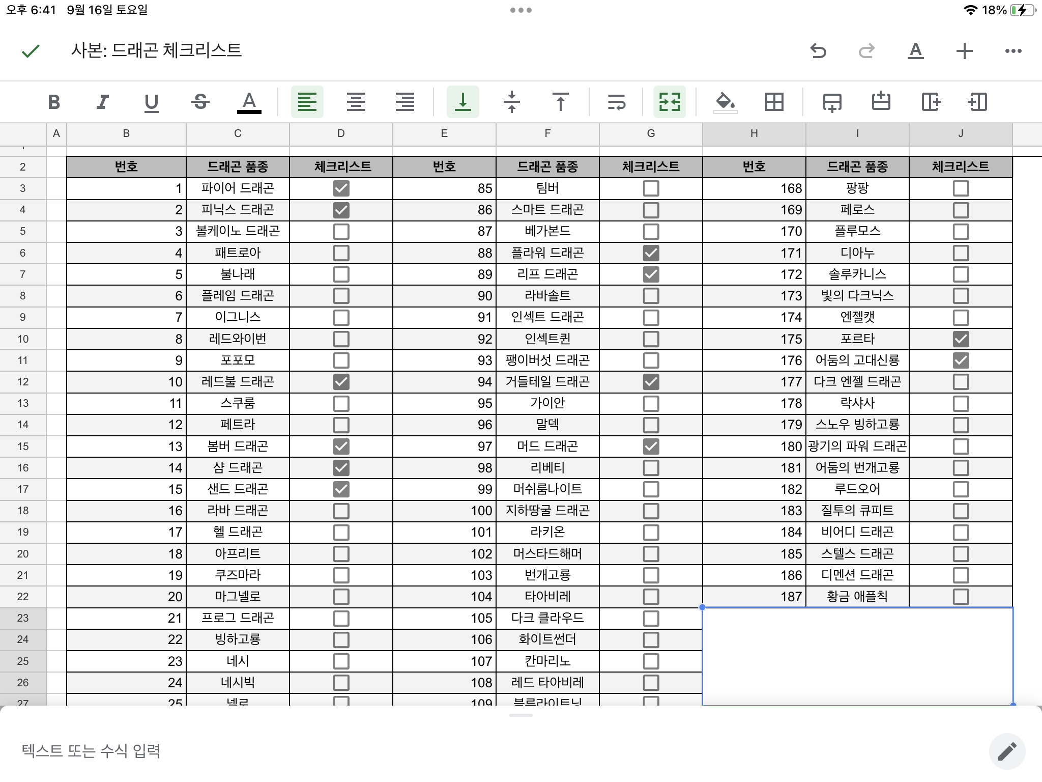 자신이 가지고 있는 드래곤을 체크할수 있는 체크리스트입니다.