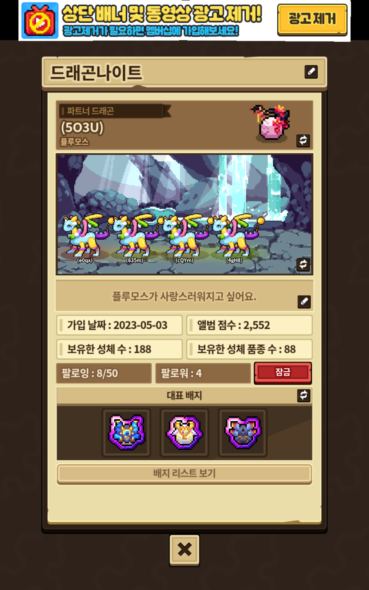 자유게시판 팡팡 성체 4마리 도감작하세요! 용기사 2023-09-16 22:22 137 0 공유 공유 URL 복사 페이스북 왓츠앱 카카오톡 라인 레딧 닫기 공유 0 0 댓글 0 삭제 이미지첨부 0/3000 등록