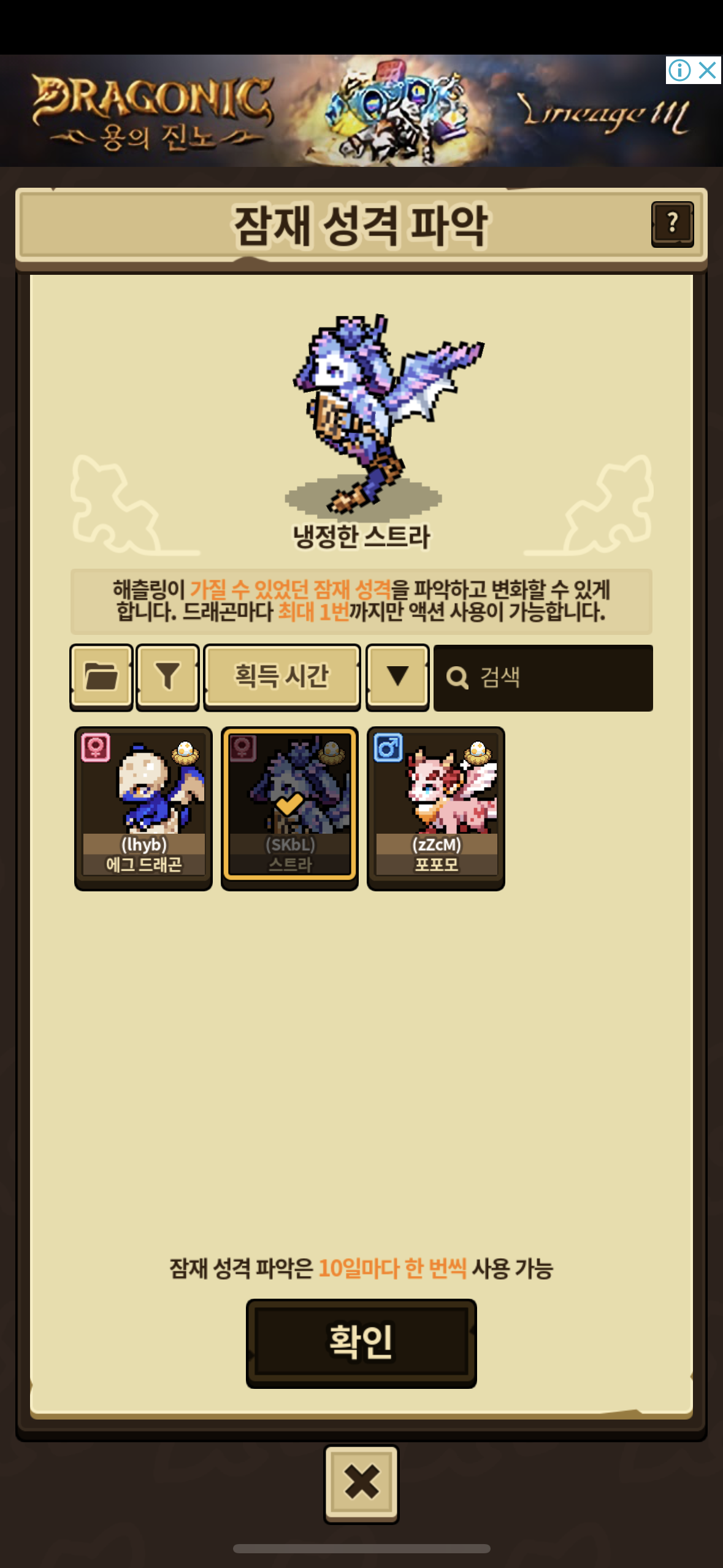 이때 확인 누르면 써지는건가요? 바꿀 생각은 없고 성격작 했던게 있는지만 확인하고 싶어서요..