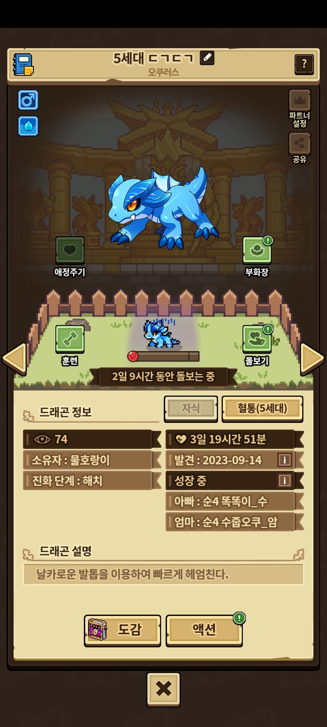 순혈바둑5세대 오쿠러스인데 훈련은 끝났으나 누적4일넘겨서 완주를 지우고 키울지 그냥 키우고 결과따라 루네라 가챠돌리기할지 고민이네요
