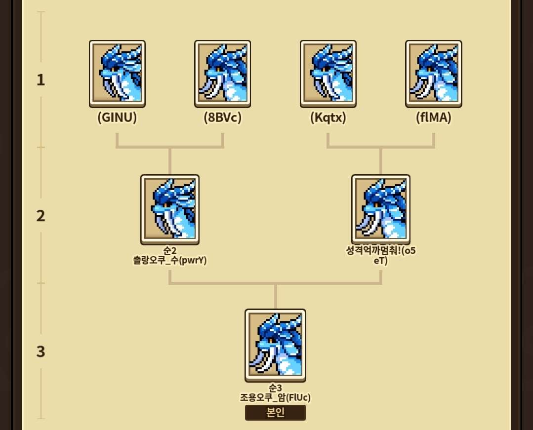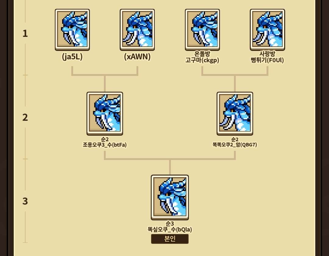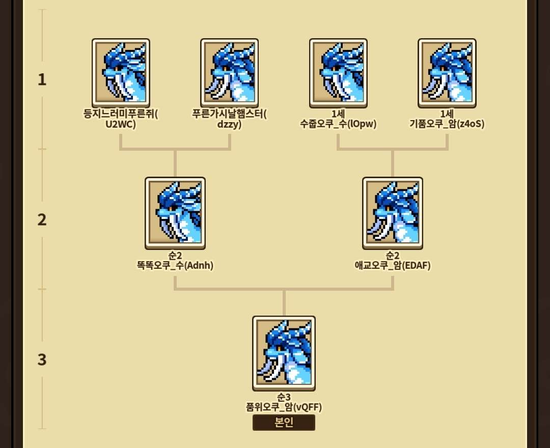 *교배쿨, 리베티쿨을 기다리실수 있다 하실 경우 이미 선택된 세대를 선택하시거나 다른 족보(4세대)를 선택하시는 것도 가능합니다.