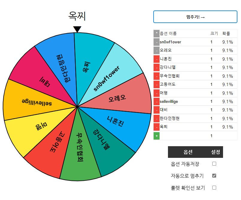 랜덤 당첨자! 옥찌님!