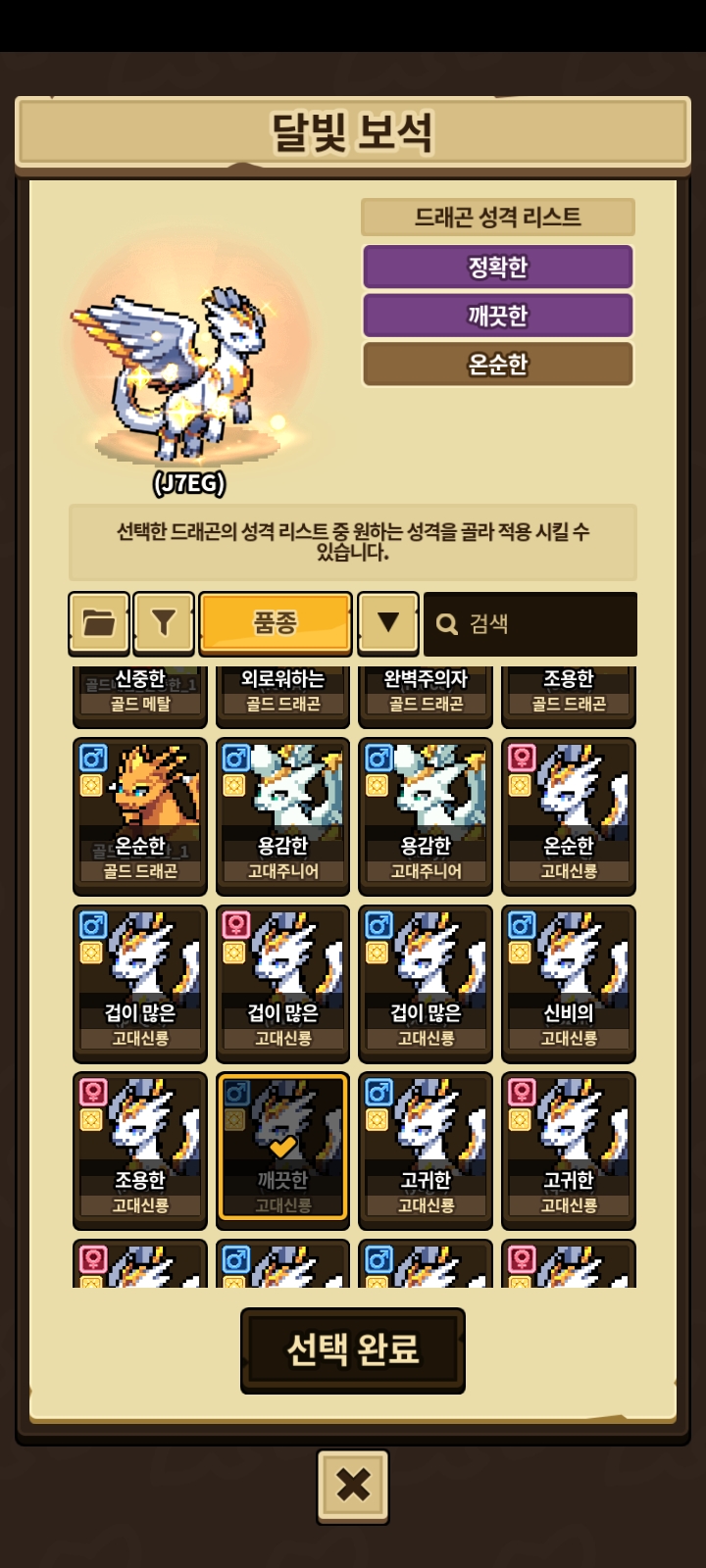 정확한 / 고대신룡 (특이사항: 바둑판 순혈 6세대((근친×)현재 성격 깨끗한)