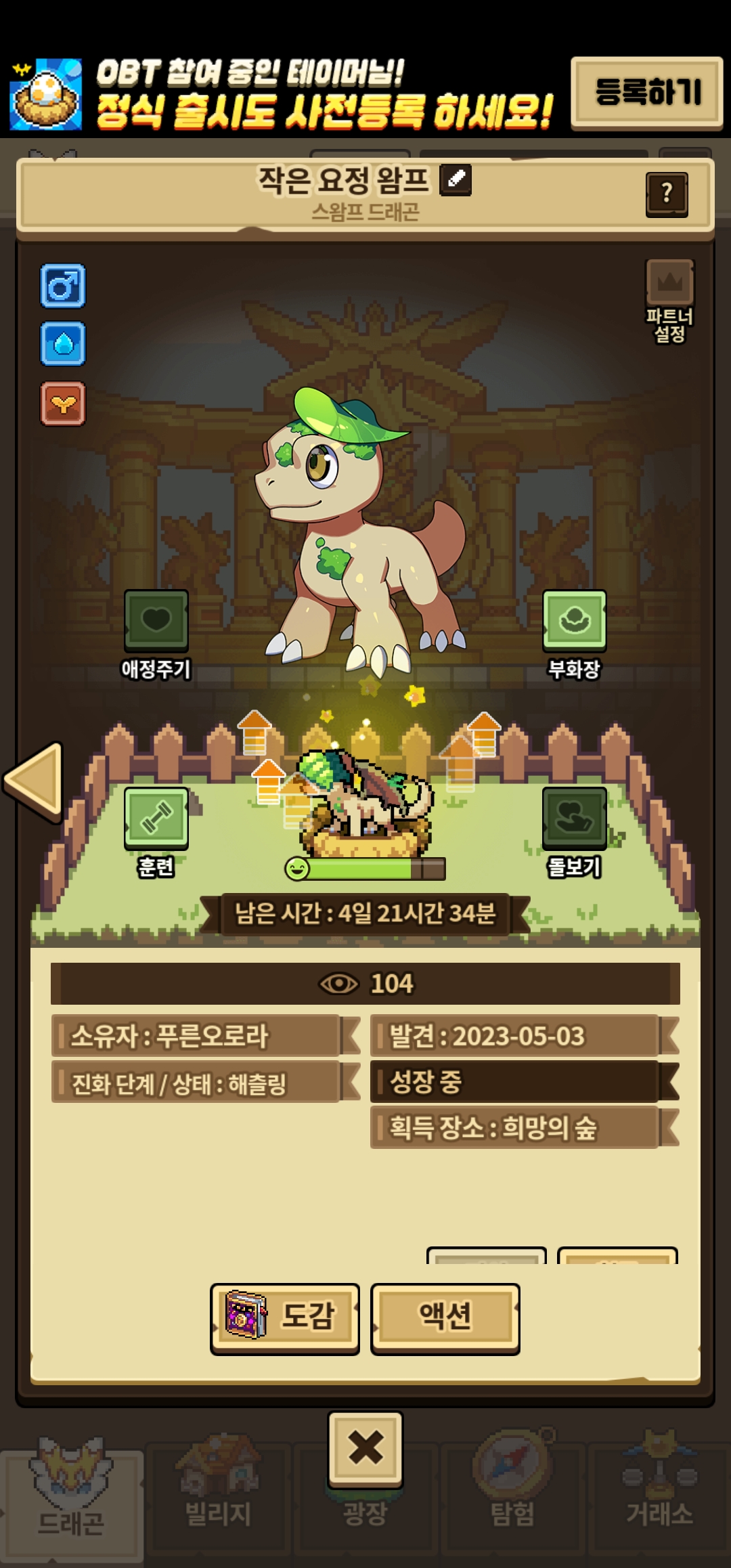 스왐프 드래곤이 지금 해츨링 까지 진화 했는데 도감에는 해치랑 해츨링 모습이 등록이 되지 않는군요 이외에도
