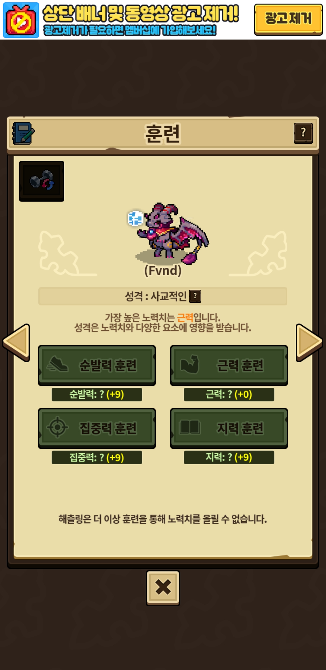 훈련은 가장높은노력치 제외 +9씩 총 3번