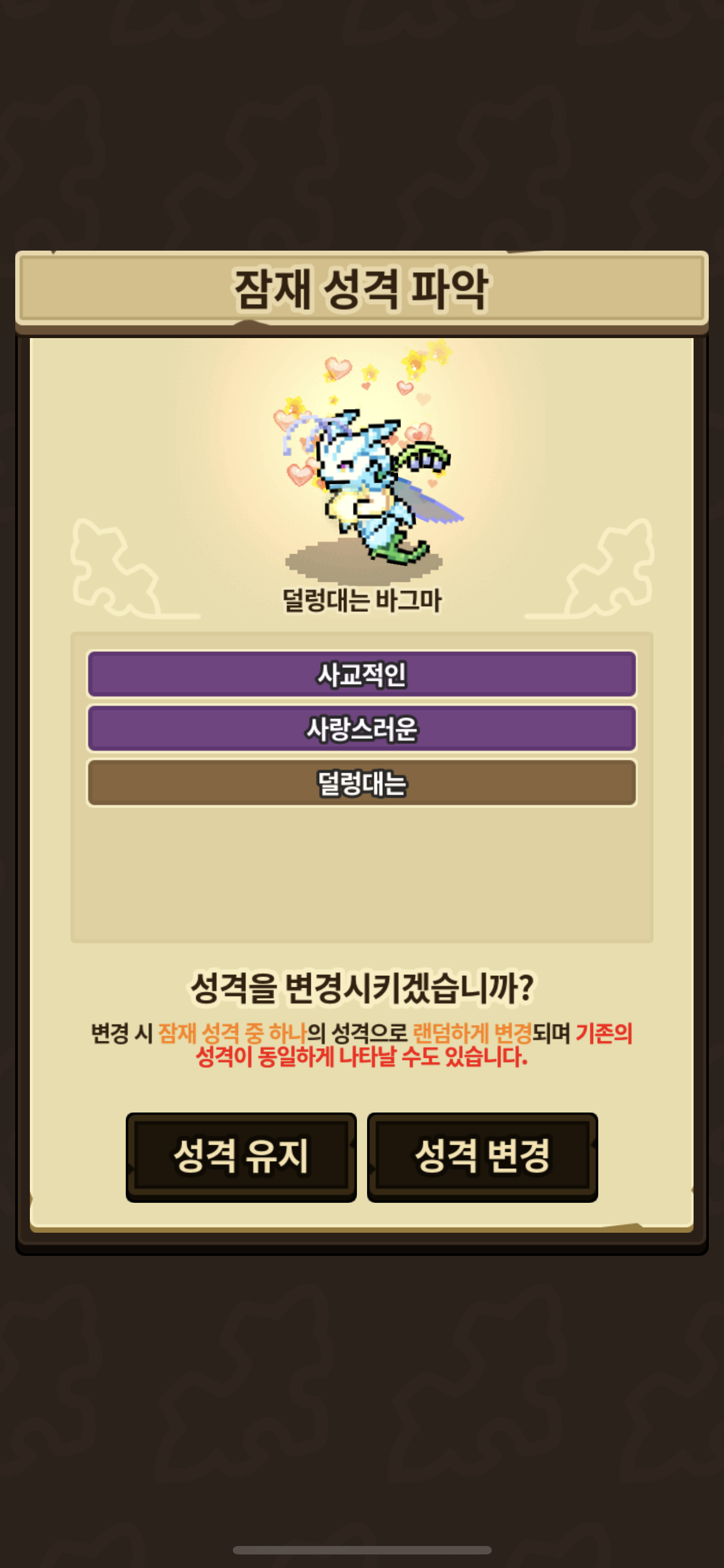 파트너 하고 쓰담작 100번 이상은 한거같은데 알&해치만 했어요!사람들이 추측했던 조건이랑 맞나봐요! 애주 에그 둘다 썼구 훈련은 완주자 하다 갈아탄거라 무시해주세용