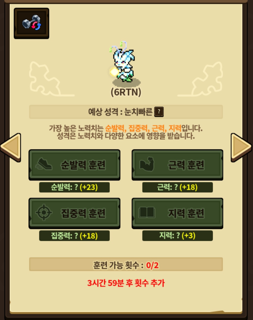 태생 개체치 순발력 0 근력 5 집중력 5 지력 20으로 추정됩니다!