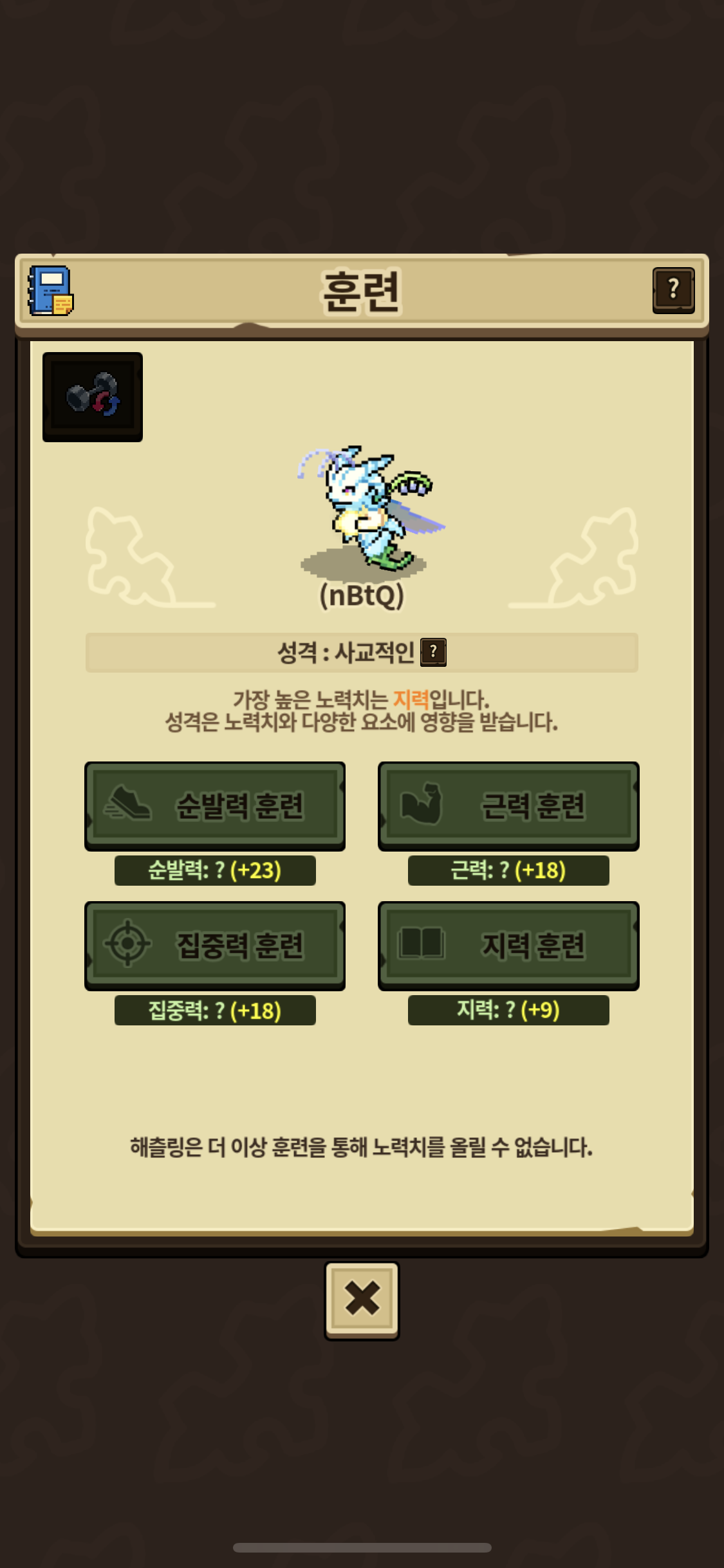 완주자 노리고 훈련했던 바그마가 사교적인이 떴어요~ 업데이트 이후에 도감작 한다고 다른 분 동굴이나 빌리지를 많이 다녔거든요?? 횟수는 세어보지 않았지만 아무래도 파트너로 설정 해놓고 다른 분 빌리지나 프로필 방문 많이 하는게 맞는거 같아요 바그마 얻자마자 파트너로 설정 해뒀었거든요.. 추측에 도움 되시길 바라면서 올려봅니다!!