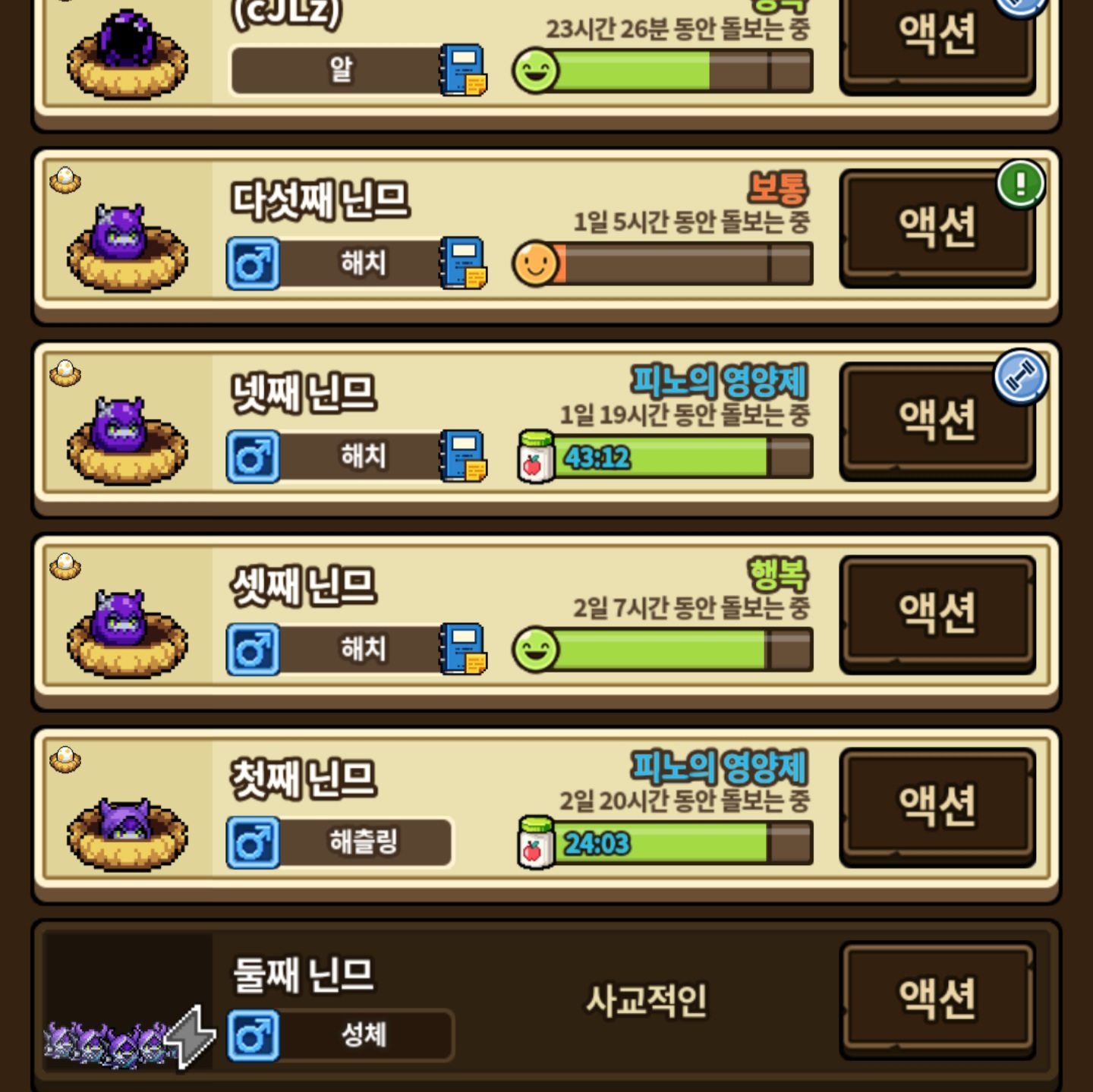 아니 성비 이게 맞나 어째서 수컷만 나오는거죠 암컷은 어딨나요,,,, :-(