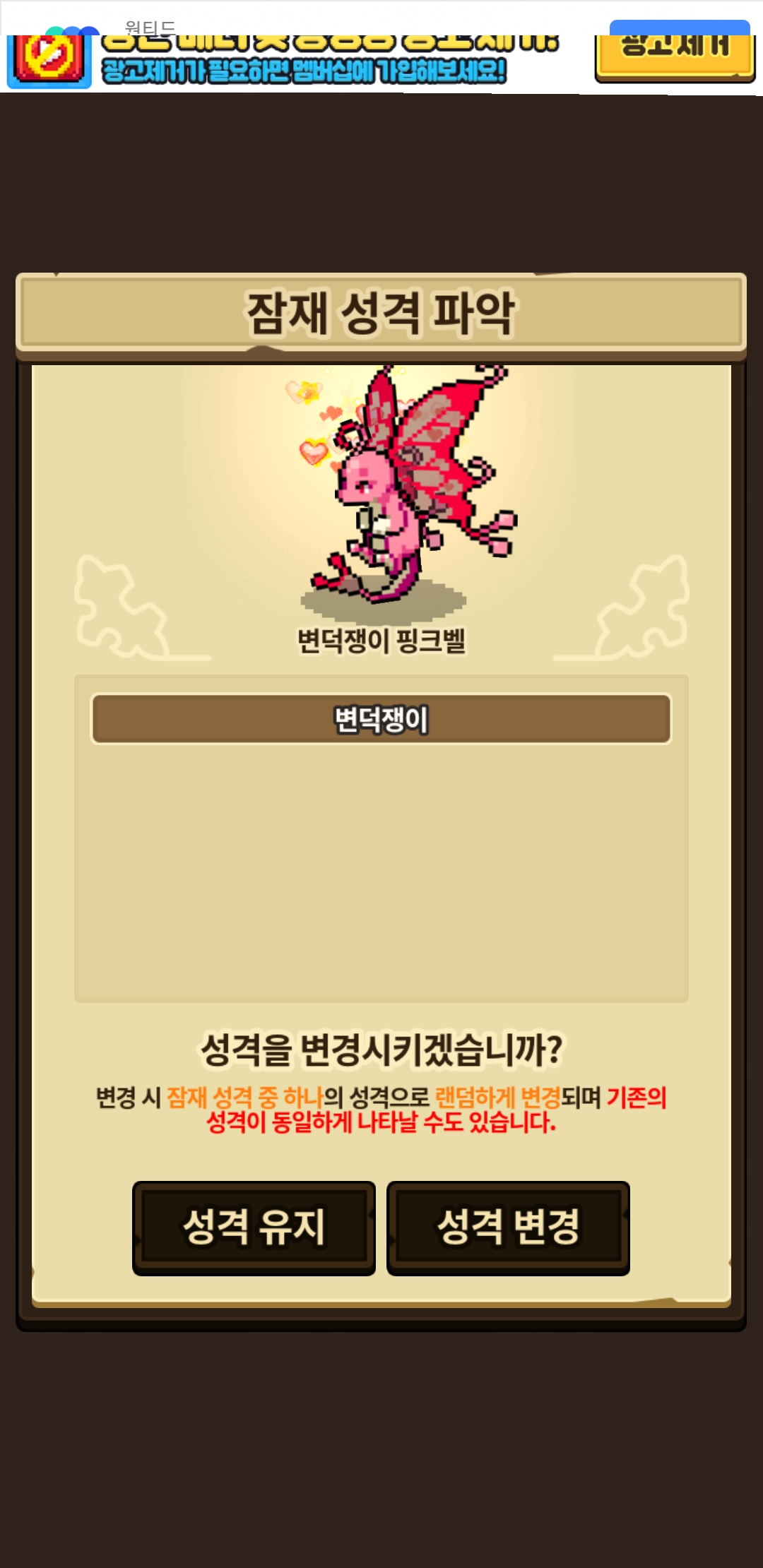 파트너로 해두고 방법 상관없이 쓰담만 엄청 하고 다녔는데 일반성격만 떴네요… ㅋㅋㅜㅜ 이럴줄 알았으면 외로움방지는 안해둘걸 그랬어요