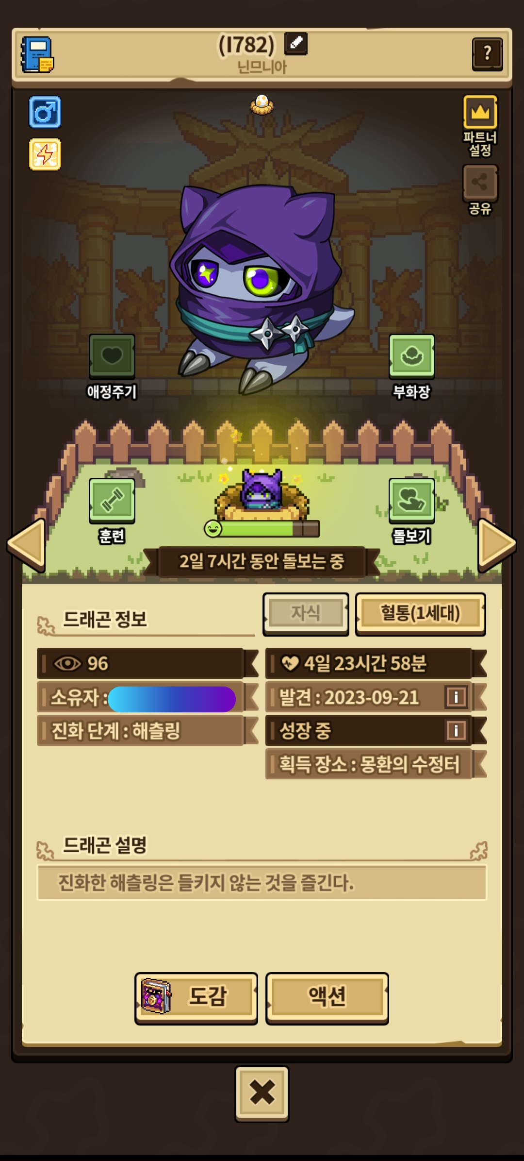 1) 외로움작이랑 같이하던 조회96 닌므니아(사실 얘 부족한 해주고 싶어서)