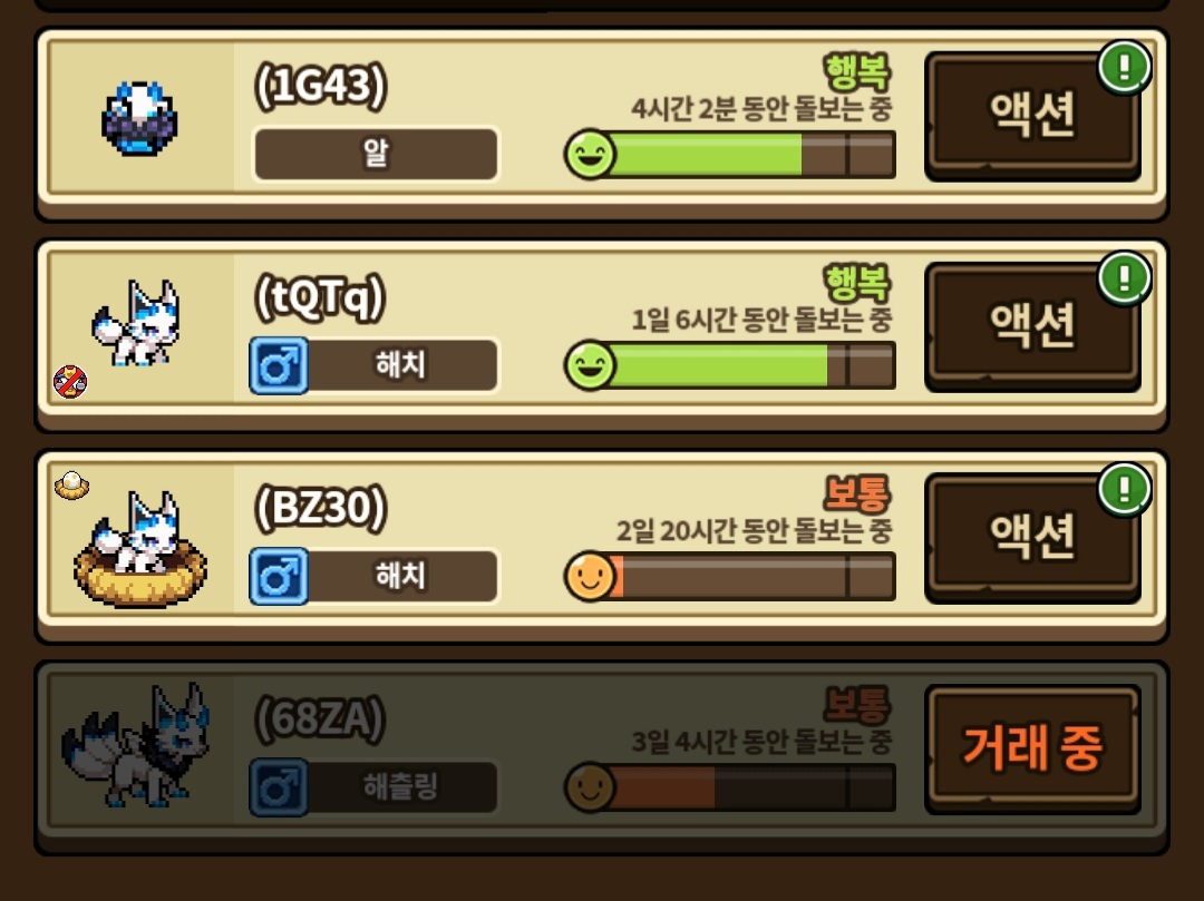 9.24 암컷으로 교환성공하고 알하나더 얻음