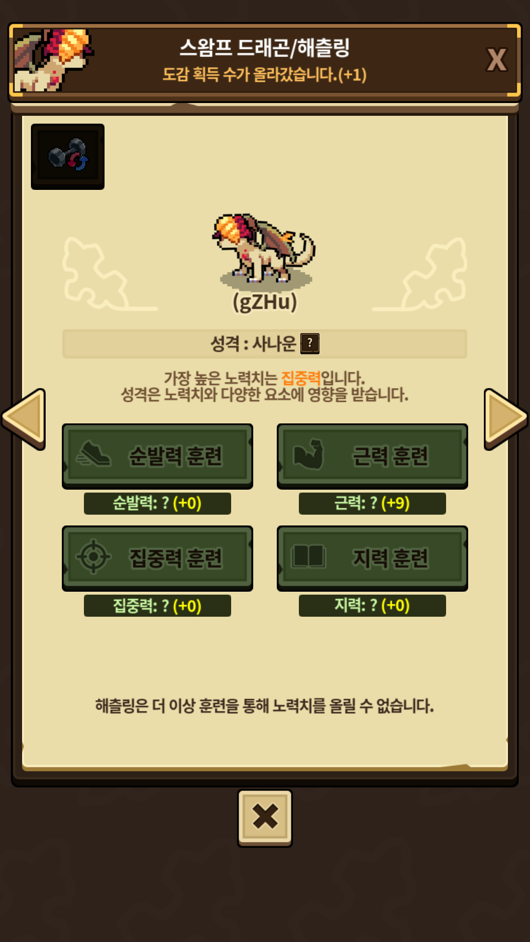드래곤마다 다르겠지만, 영양제가 중요해 보이는 성격이네요.