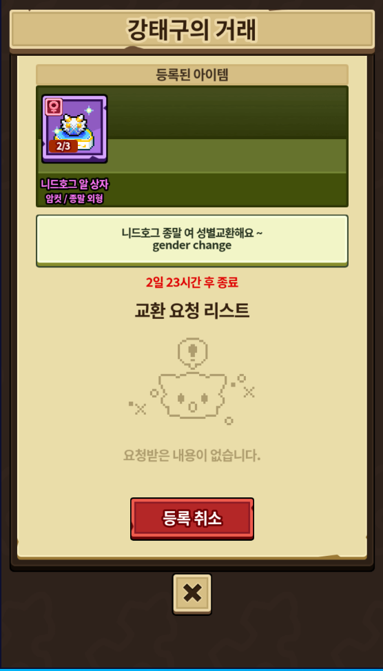 거래게시판 종말니드호그 암컷 성별교환해요 Rhathymini4230 2024-01-15 02:27 168 0 공유 공유 URL 복사 페이스북 왓츠앱 카카오톡 라인 레딧 닫기 공유 수컷으로 바꿔봐요~ 0 0 댓글 0 삭제 이미지첨부 0/3000 등록