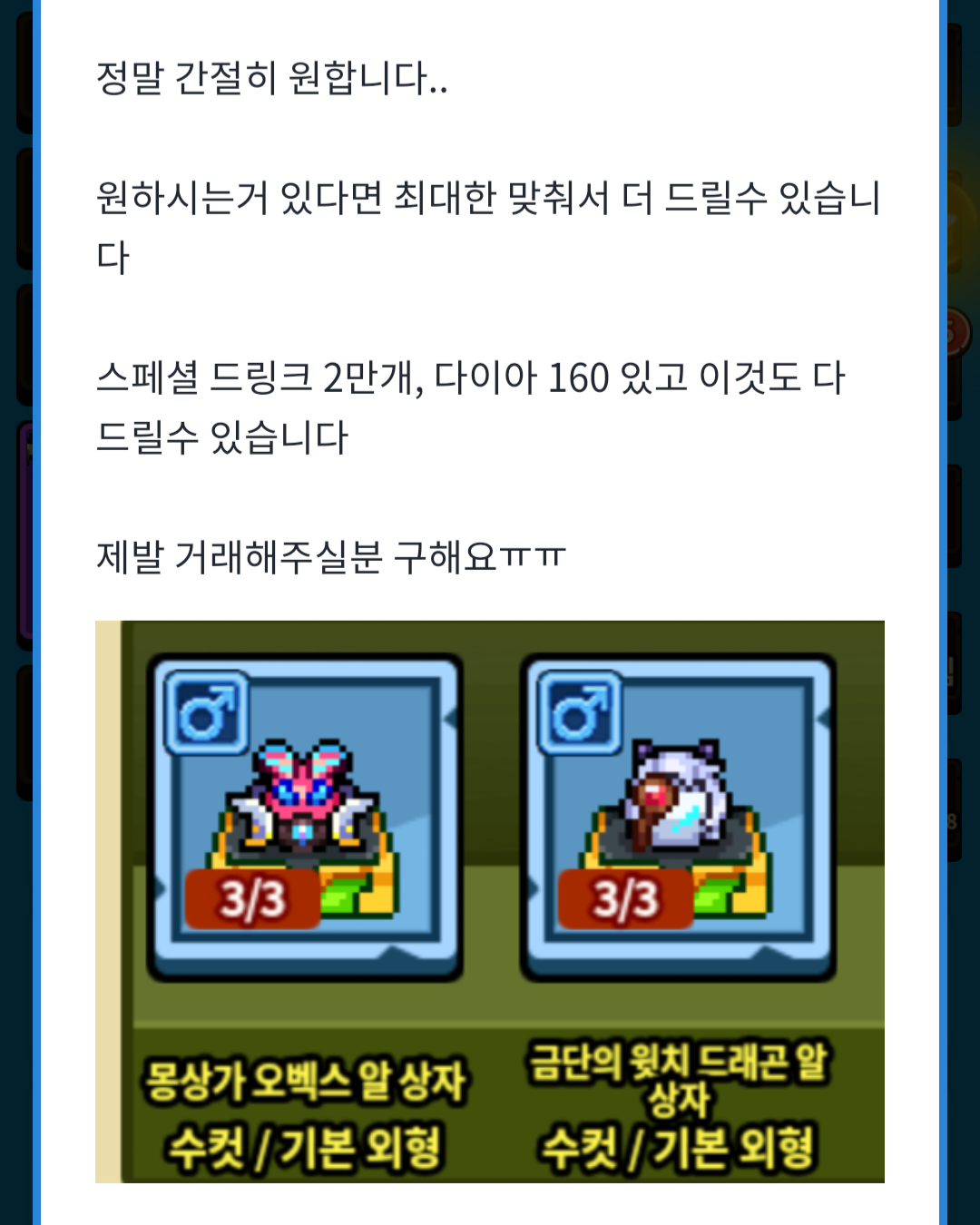 거래게시판 라떼상자 한쌍 구합니다 Euglossini5734 2024-04-05 09:07 133 0 공유 공유 URL 복사 페이스북 왓츠앱 카카오톡 라인 레딧 닫기 공유 0 0 댓글 0 삭제 이미지첨부 0/3000 등록