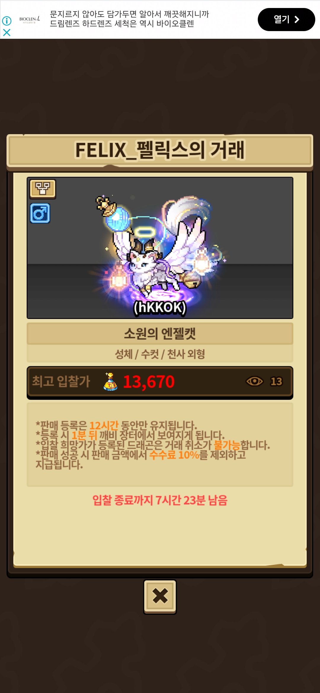 소원의 수컷 천사 엔젤캣 ( 현재 최고 입찰가 13670 드링크)