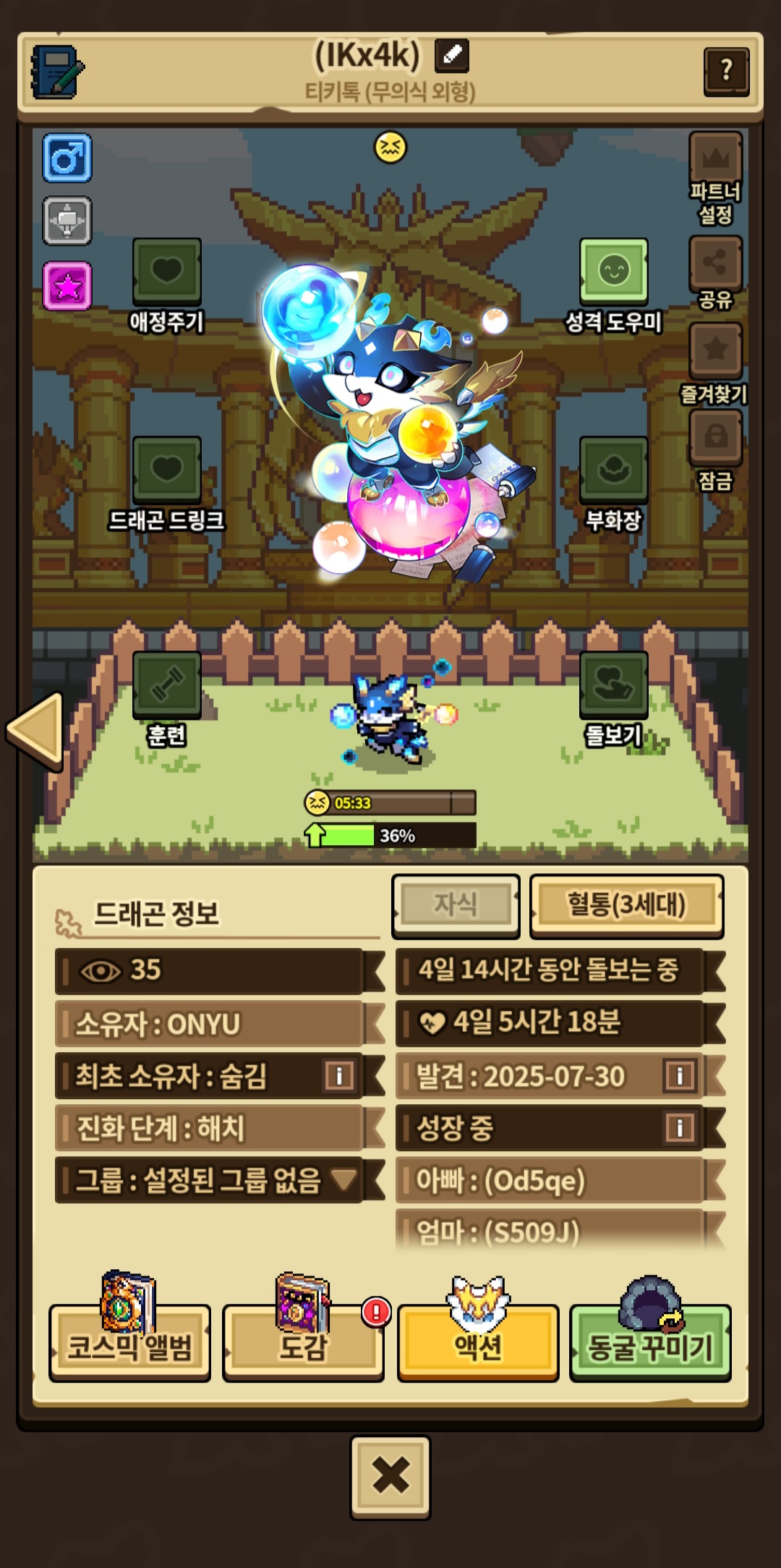 이 아이 인데 혼돈작하던 중 먼저 부화해서요. 그래서 다시 잡무의식 티키톡 알로 바꿔주실 분 구합니다~