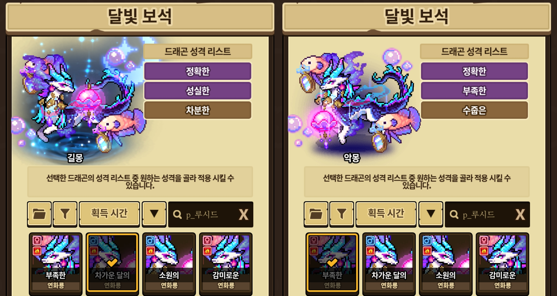 길몽: 성실한 > 차가운 달의 달조각 사용