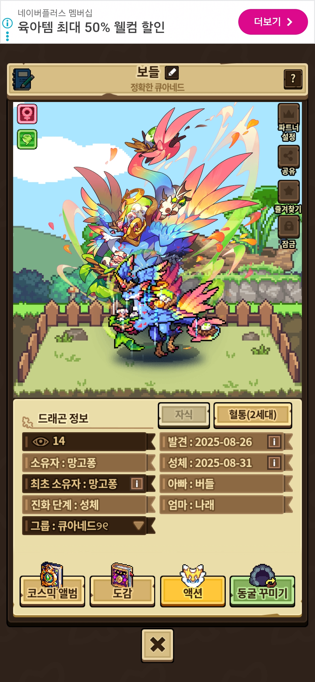 다음이나 다다음 깹장에 올릴 수 있으신 1세대 2세대 모두 훈련(능력)치 100 찍은 큐아네드 2세대 찾습니다.