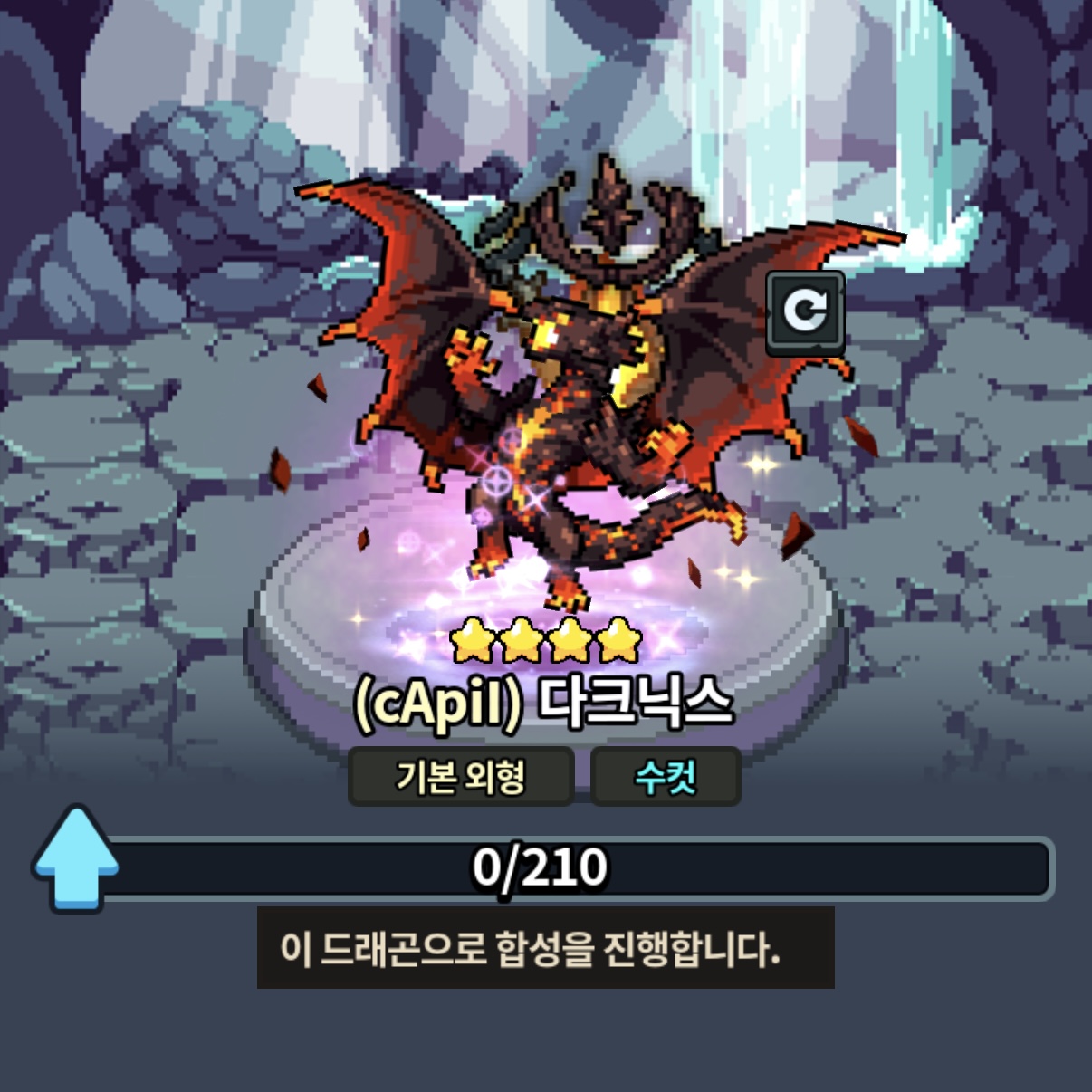 합성 재료 드래곤으로 1세대 다크닉스만 구해봅니다. (키우는 드래곤이 아닙니다.) 알~해치는 드라젬 100, 해츨링은 드라젬 500개로 구매하겠습니다.