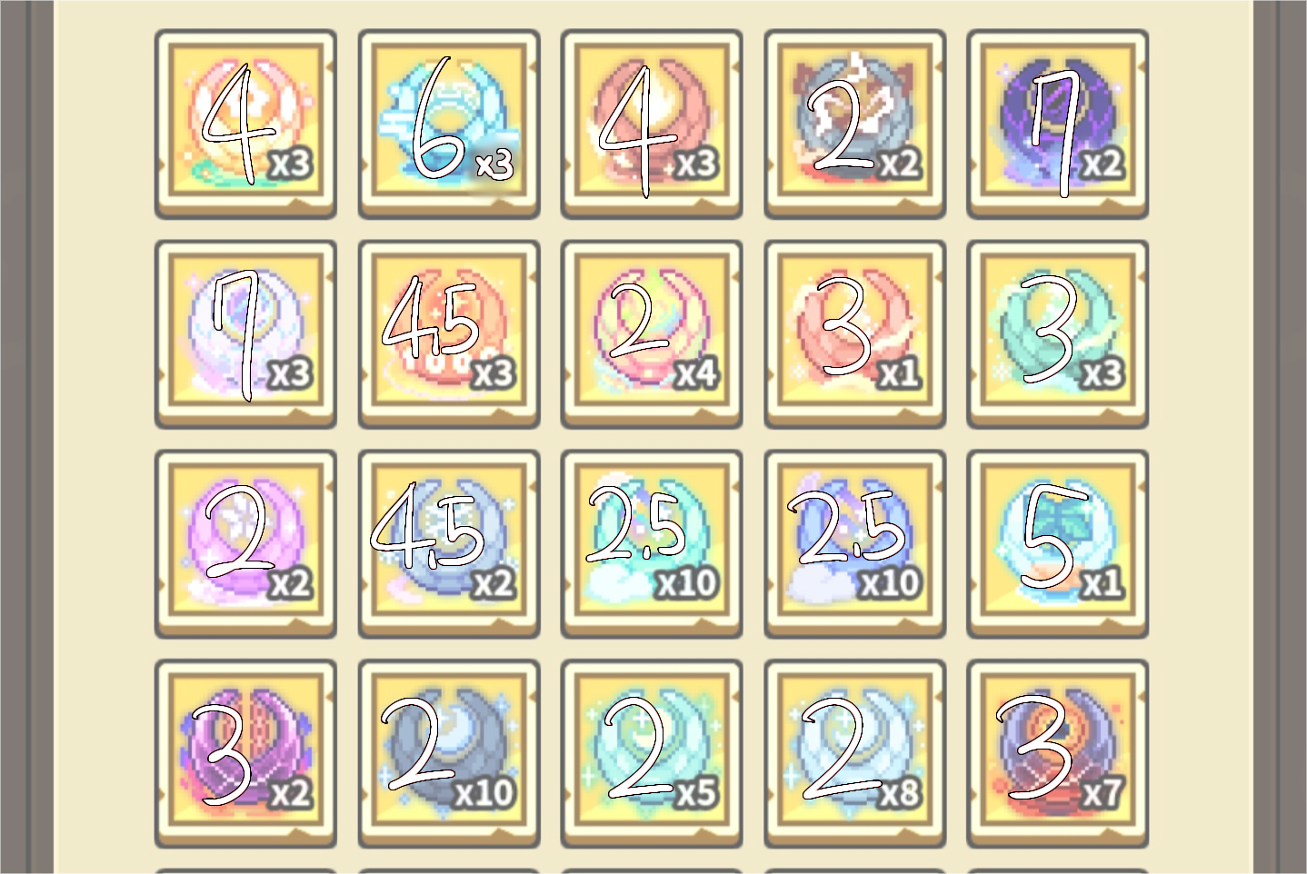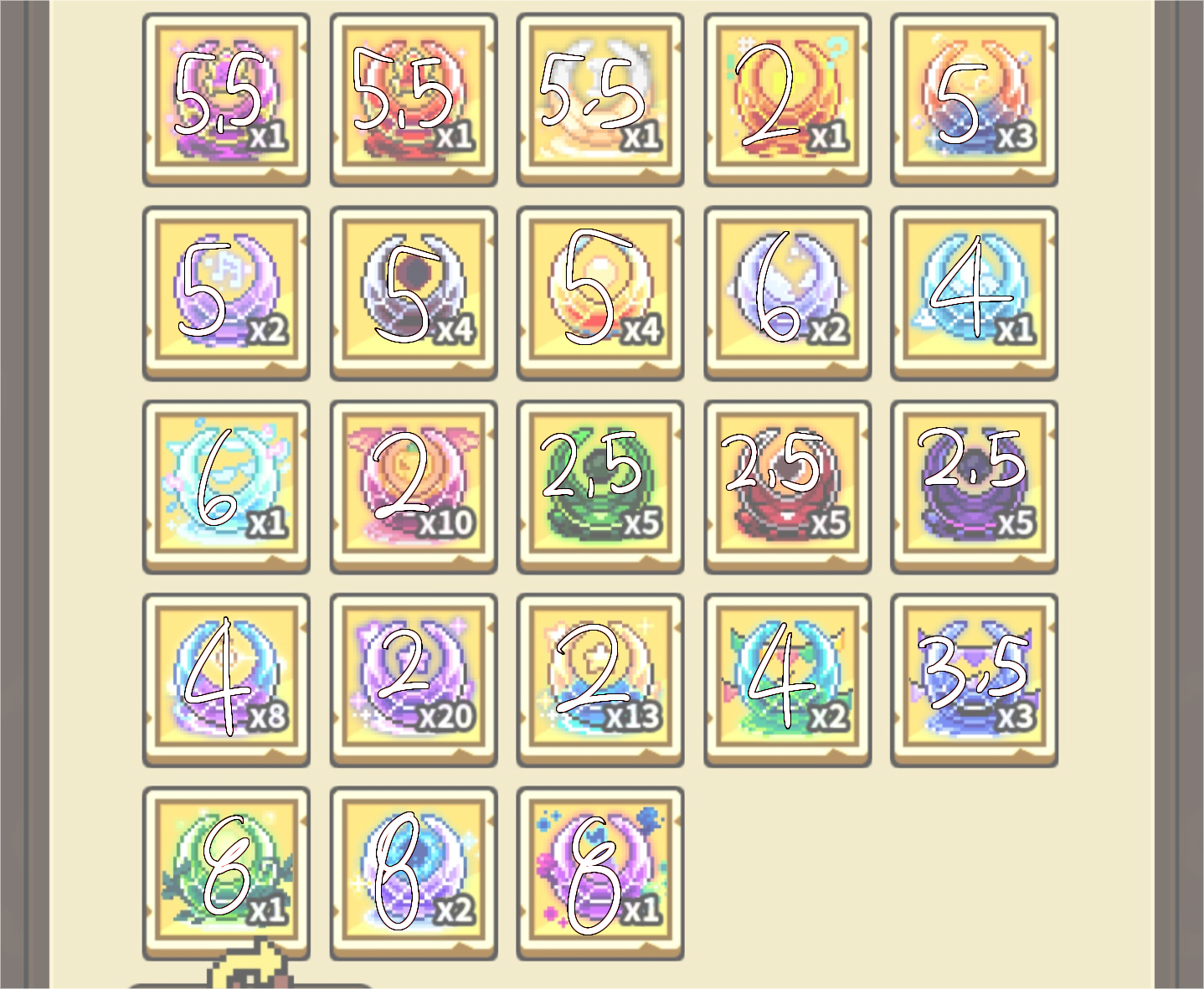 봄날의, 영험한, 황홀한, 거짓된 운명, 진실된 운명, 천일 낮, 불굴, 따뜻한 추억, 소중한 추억, 하얀 눈, 아늑한, 작은 바다, 작은 별, 우정, 충성, 은빛 달, 고요한 달, 차가운 달, 멸망, 찬탈자, 절대자, 수호자, 불완전한, 별 바다, 감미로운, 어스름한, 타오르는, 꿈결같은, 변화하는, 친근한, 무시무시한, 그림자 달, 붉은 달, 검은 달, 소원의, 수수께끼의, 몽환적인, 활기찬, 끈기있는, 정화의, 영리한, 탐식의