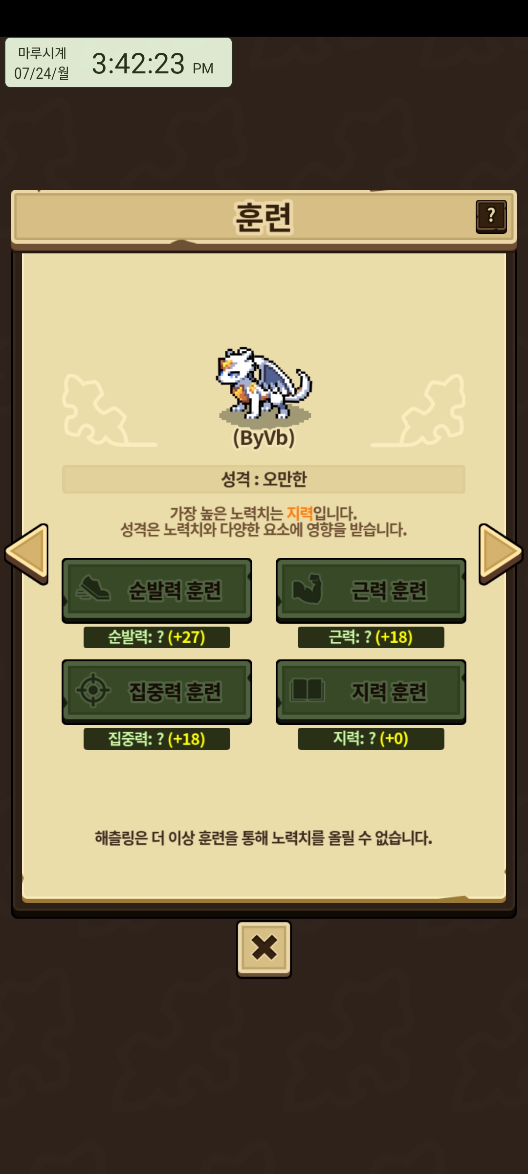 (오만, 서투른, 호기심, 애교, 겁많은, 깨끗, 고귀)