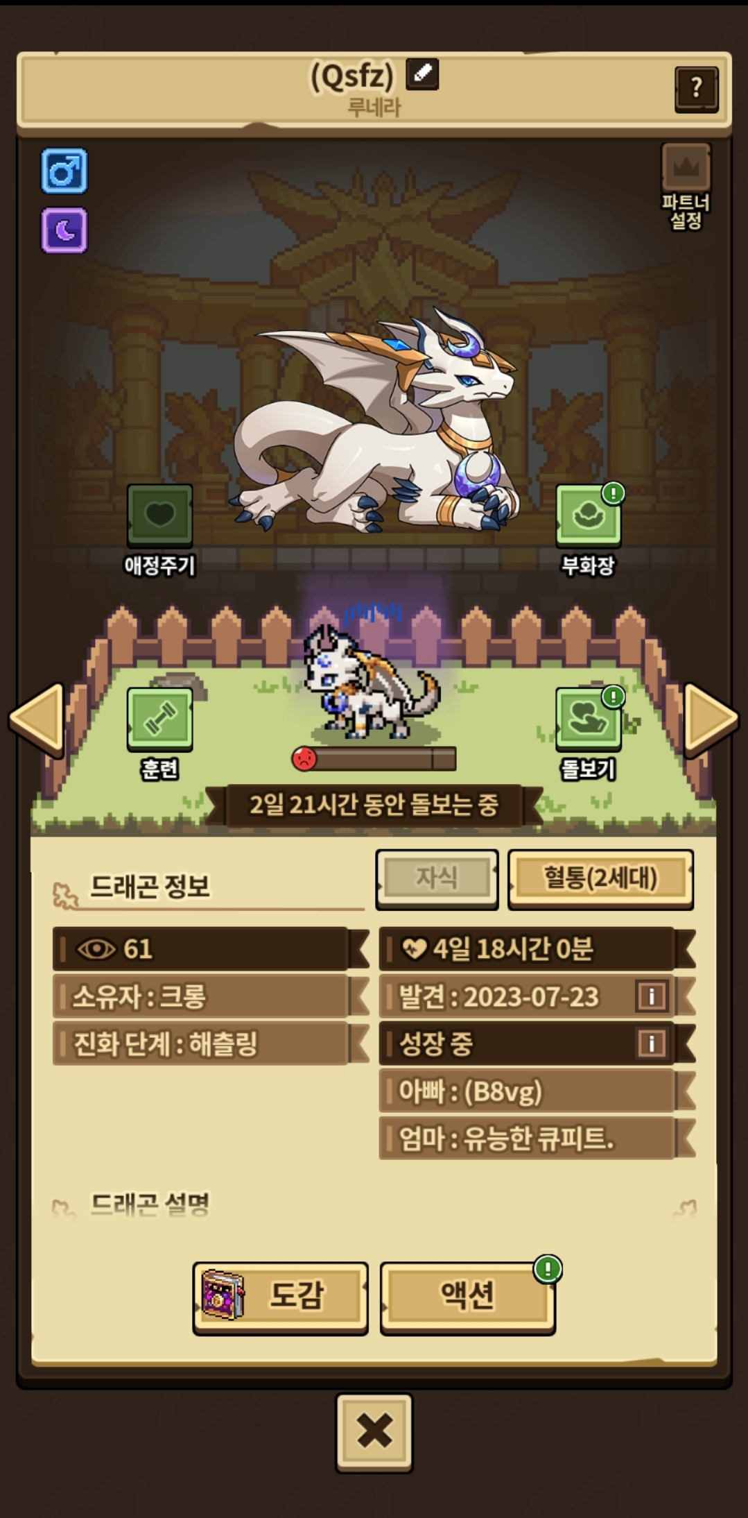 잡루네라 2세대 호기심 많은 수컷 해츨링으로 잡루네라 2세대 특수성격 암컷 해츨링이나 잡루네라 2세대 암컷 해치 구합니다