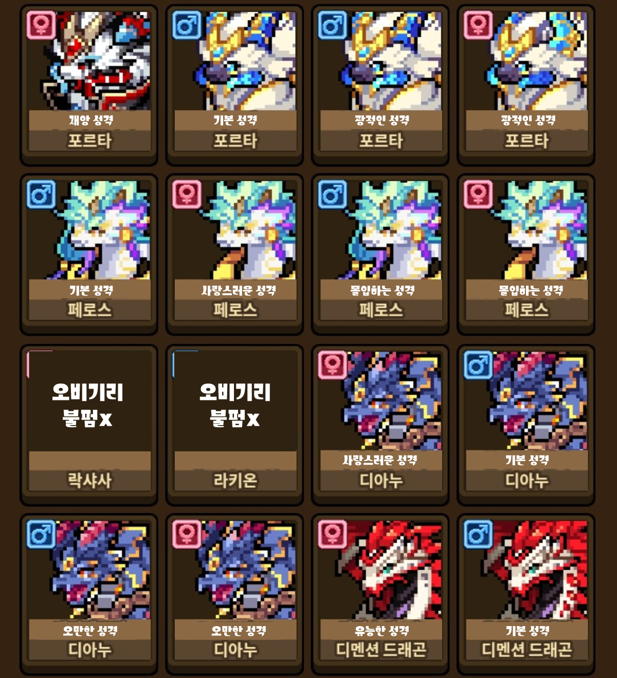 현재 보유중인 1세대 카코용이랑 디멘션이고 재앙 제외 한쌍씩 재앙 가능있는 순혈 뽑을수있게끔 성격작 맞춘 상태인데 1세대 루피아 한쌍 또는 고앙 교환이 가능할런지 모르겠네요ㅠㅠ