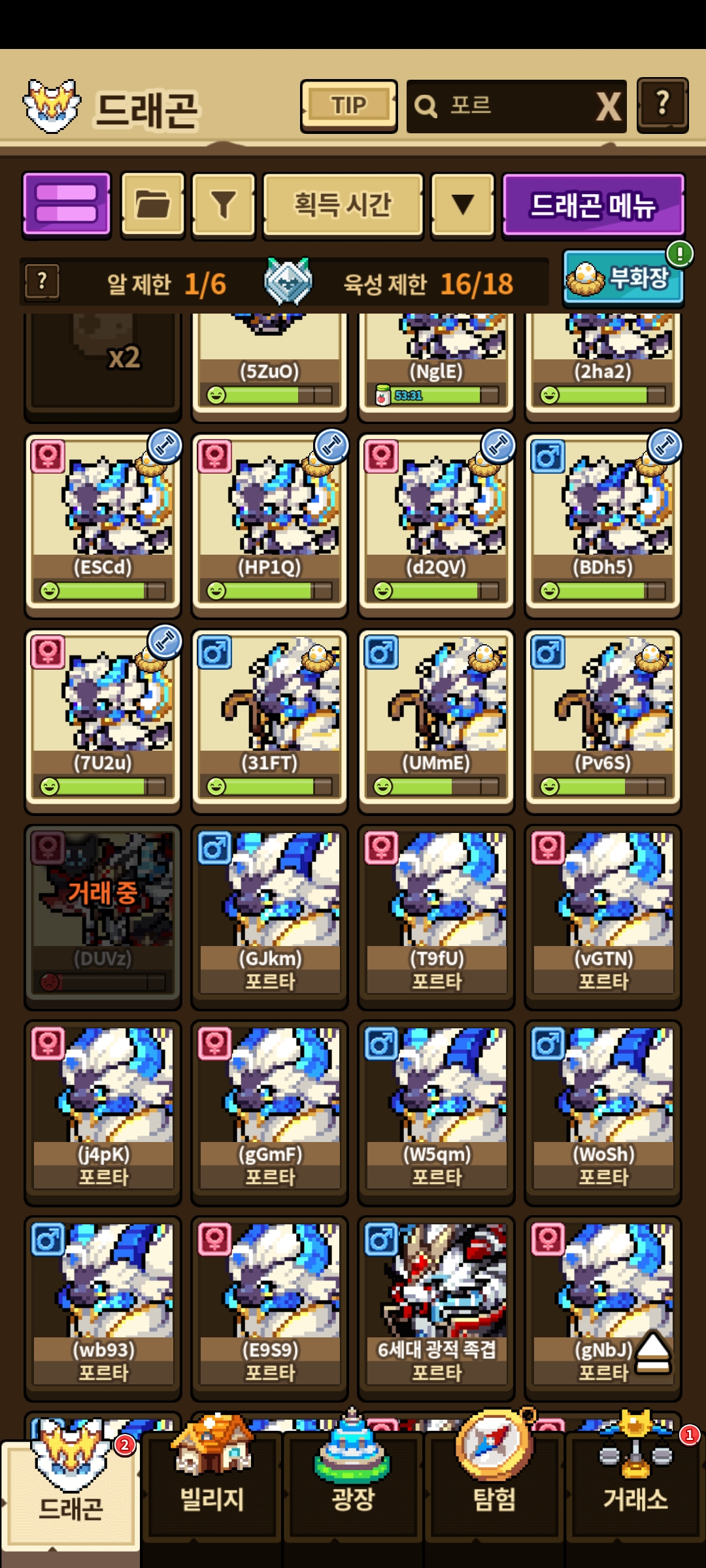 전부 광적 순혈들이고 2세대 말고는 다 만들수 있습니다. 지금 있는애들은 4~7세대 순혈들 입니다.