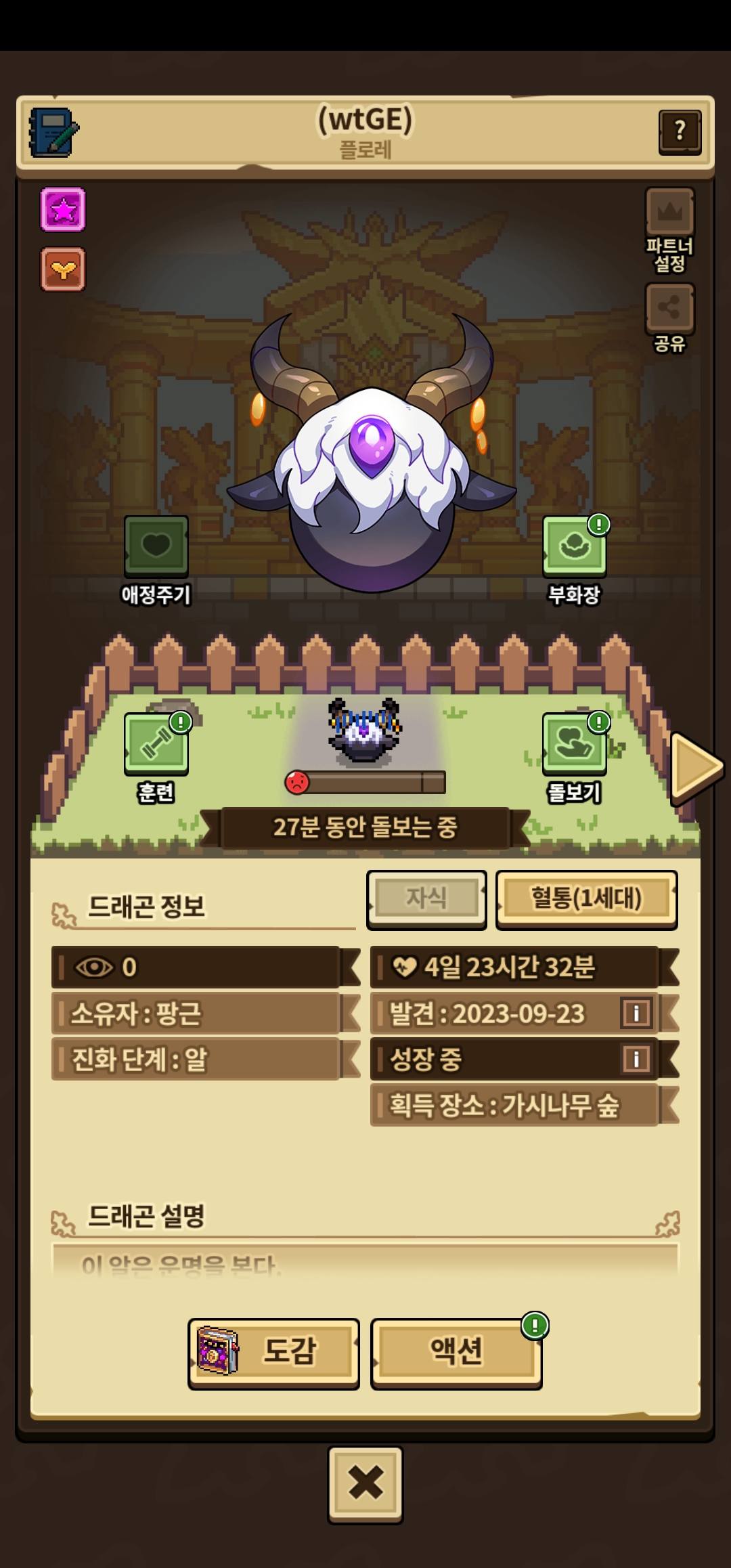 돌보기, 훈련x 조회수 0 플로레입니다
