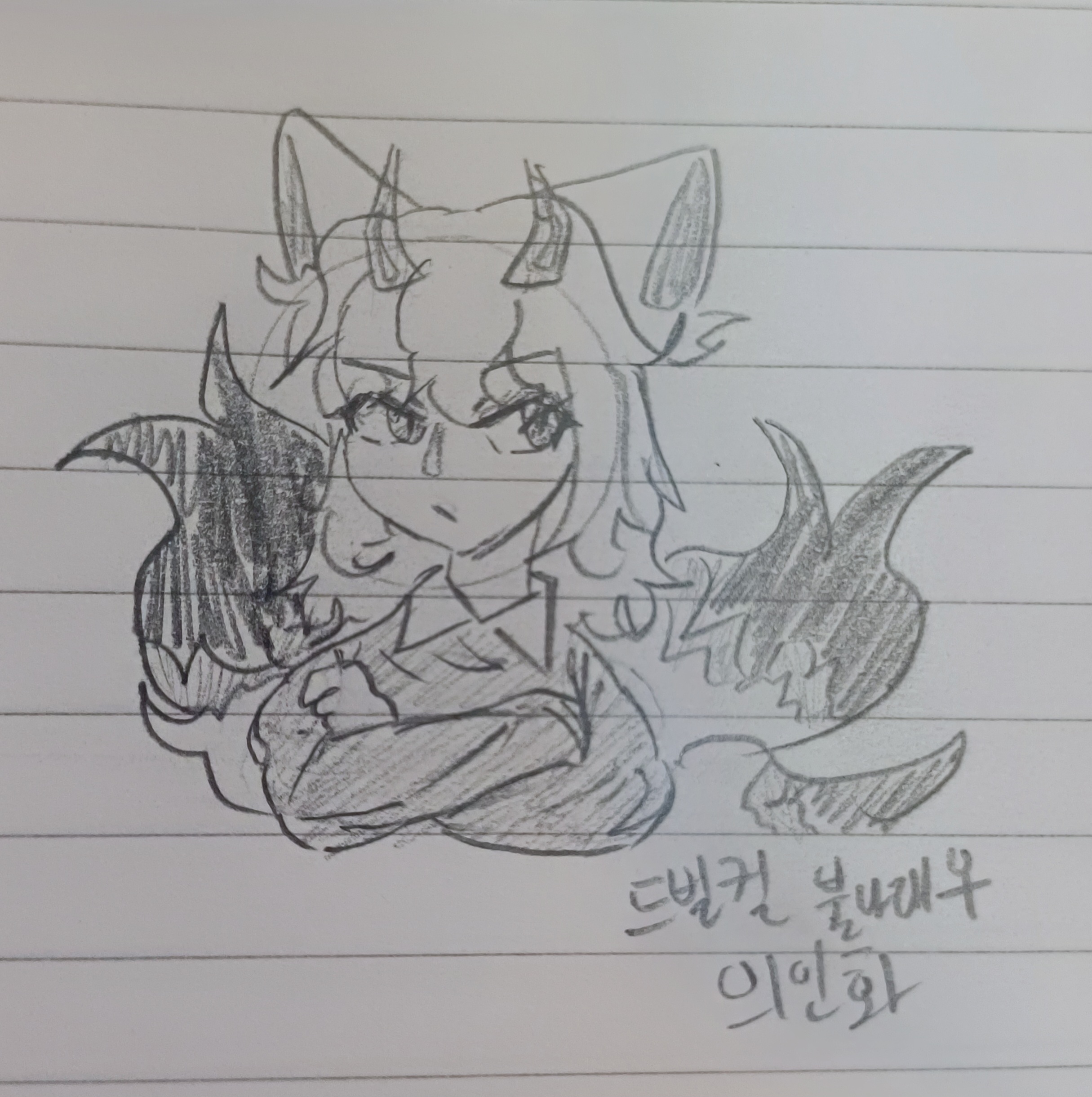 방과후에 공부하다 말고 갑자기 그린 늑대 낙서