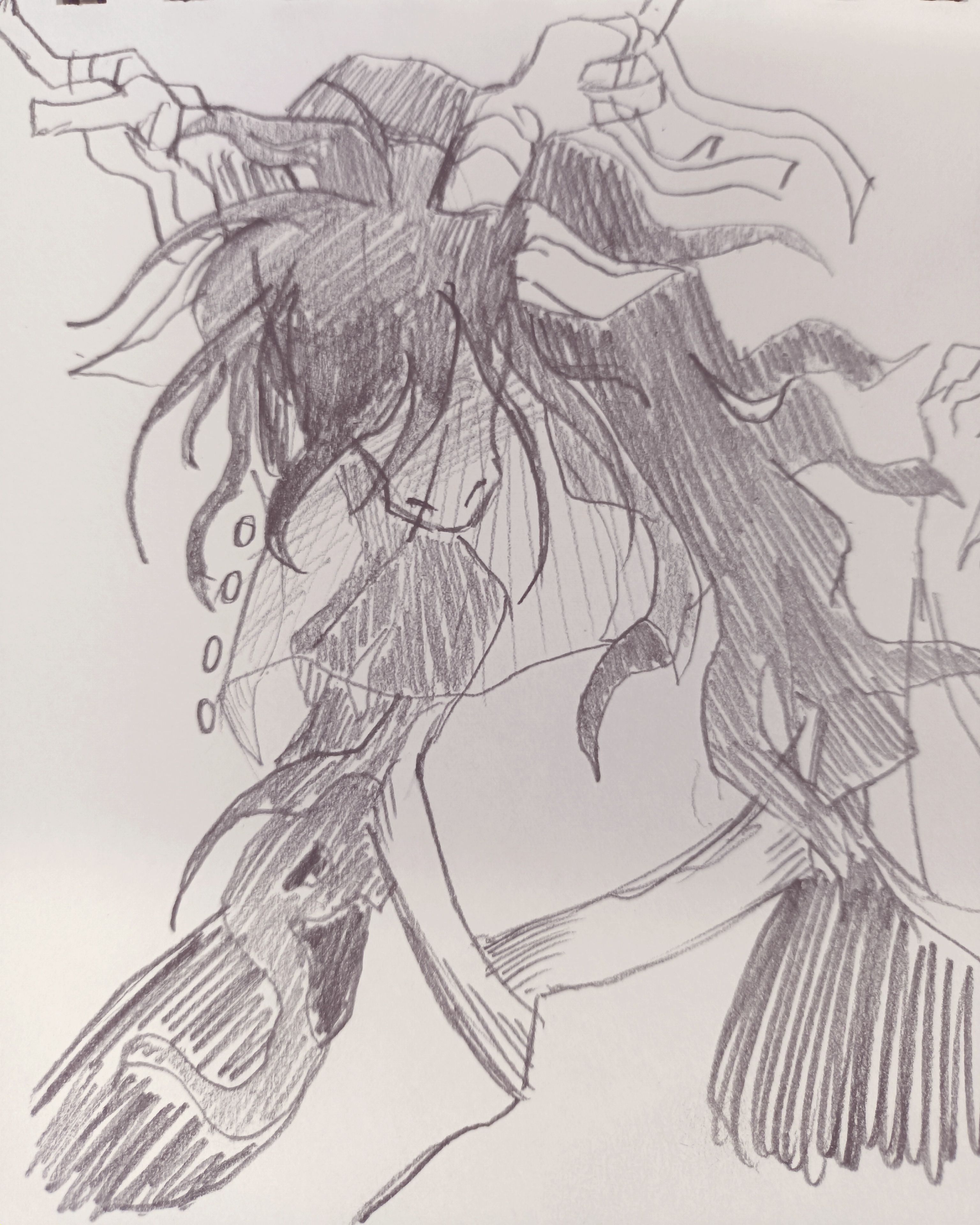 컨셉이 한국풍 + 제(제사) + 펄럭이는 옷감과 머리 + 흑백인데 잘 표현이 안된 것 같기도 하고.