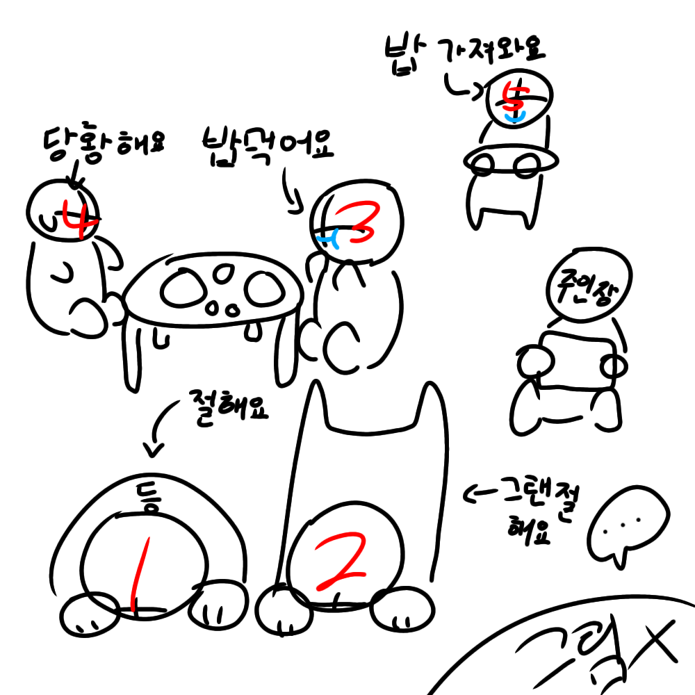 파란색으로 뭔가 그려져 있는 3, 5번은 각각