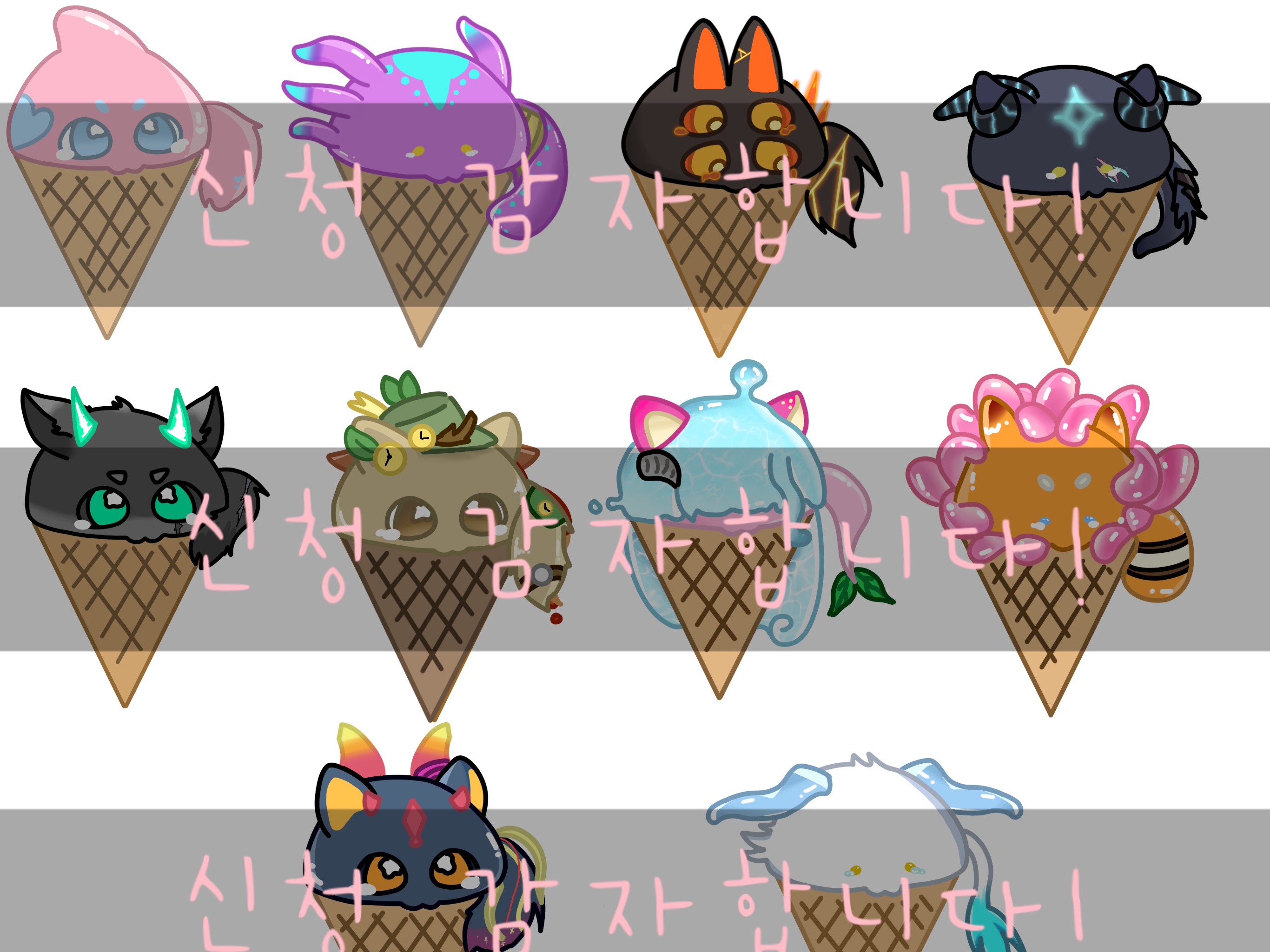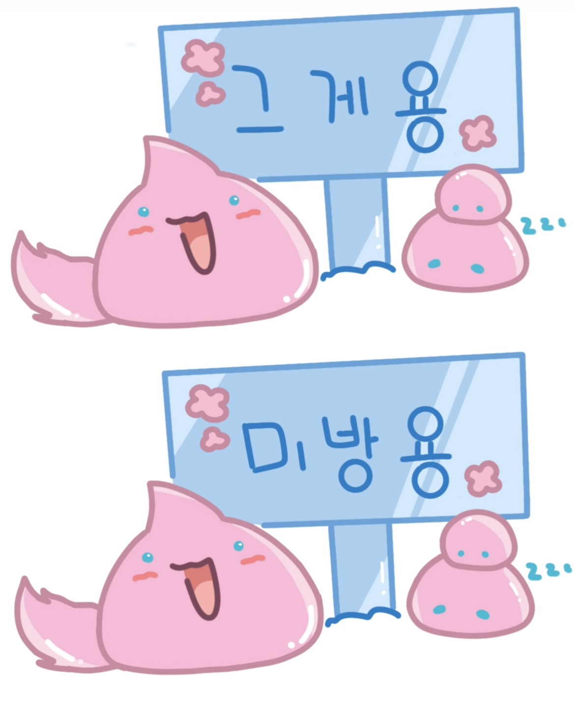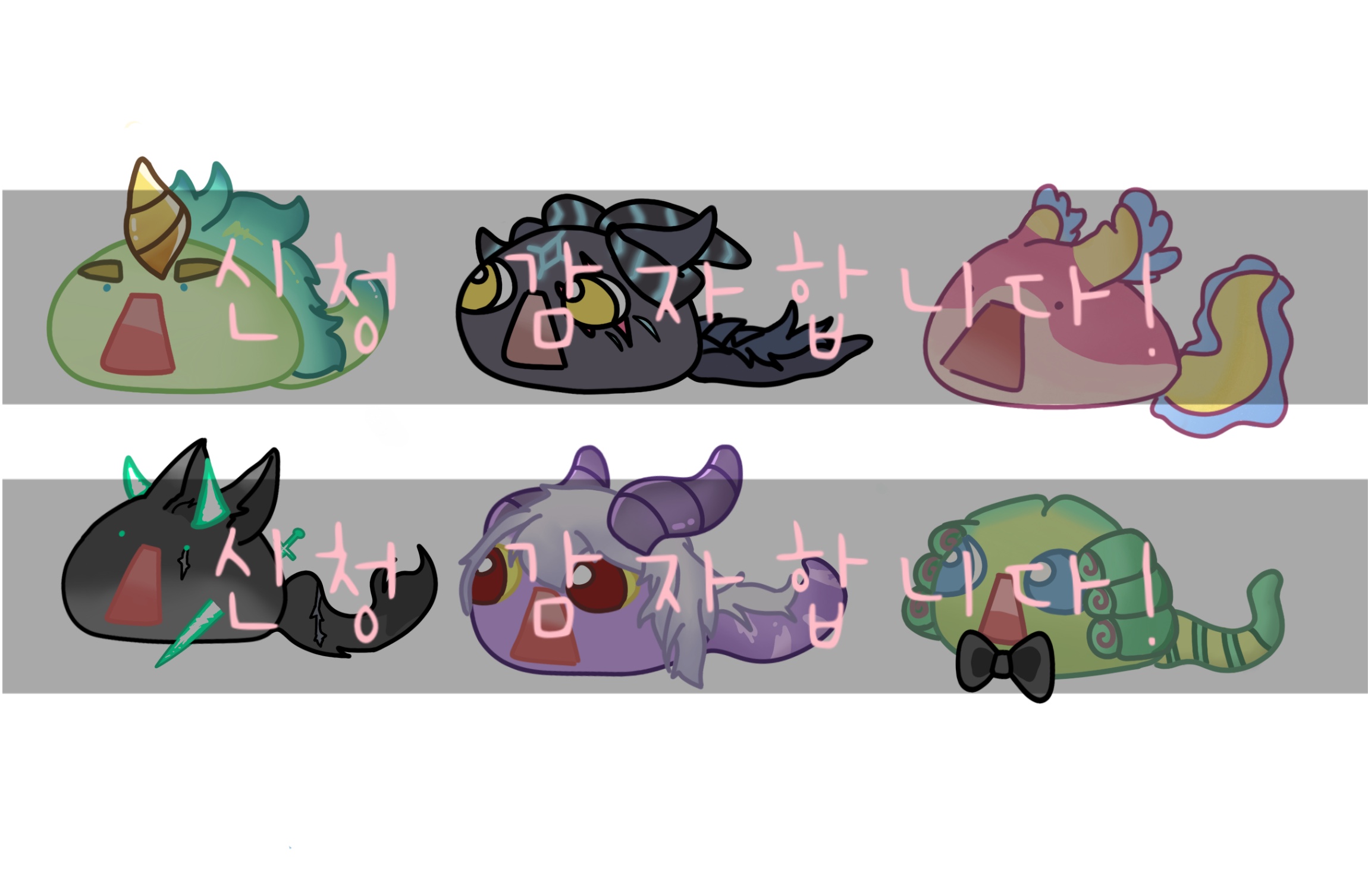 우측 두 슬라임은 신청하신 와기 색깔만 반영해요!