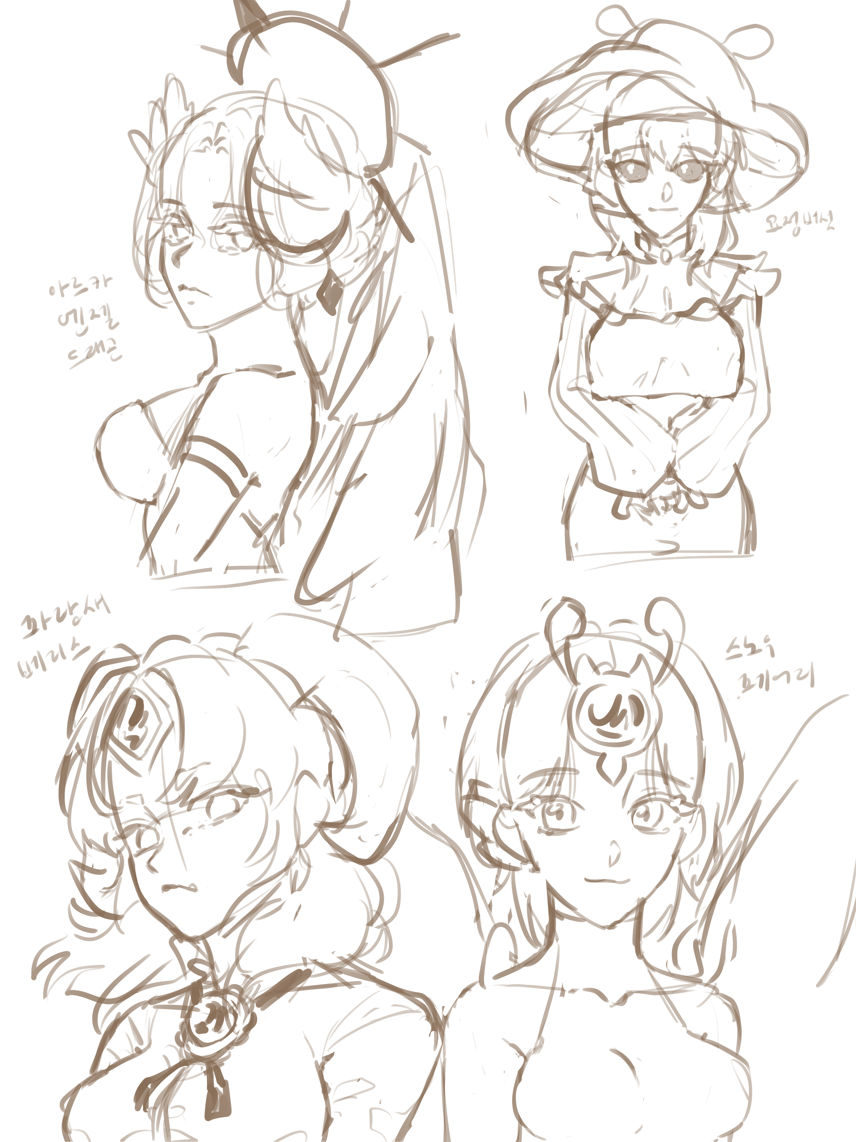 그림체 연습&연구할 겸 용용이들 의인화 낙서 한거 올리고 자러갑니다.. 다들 굿나잇!
