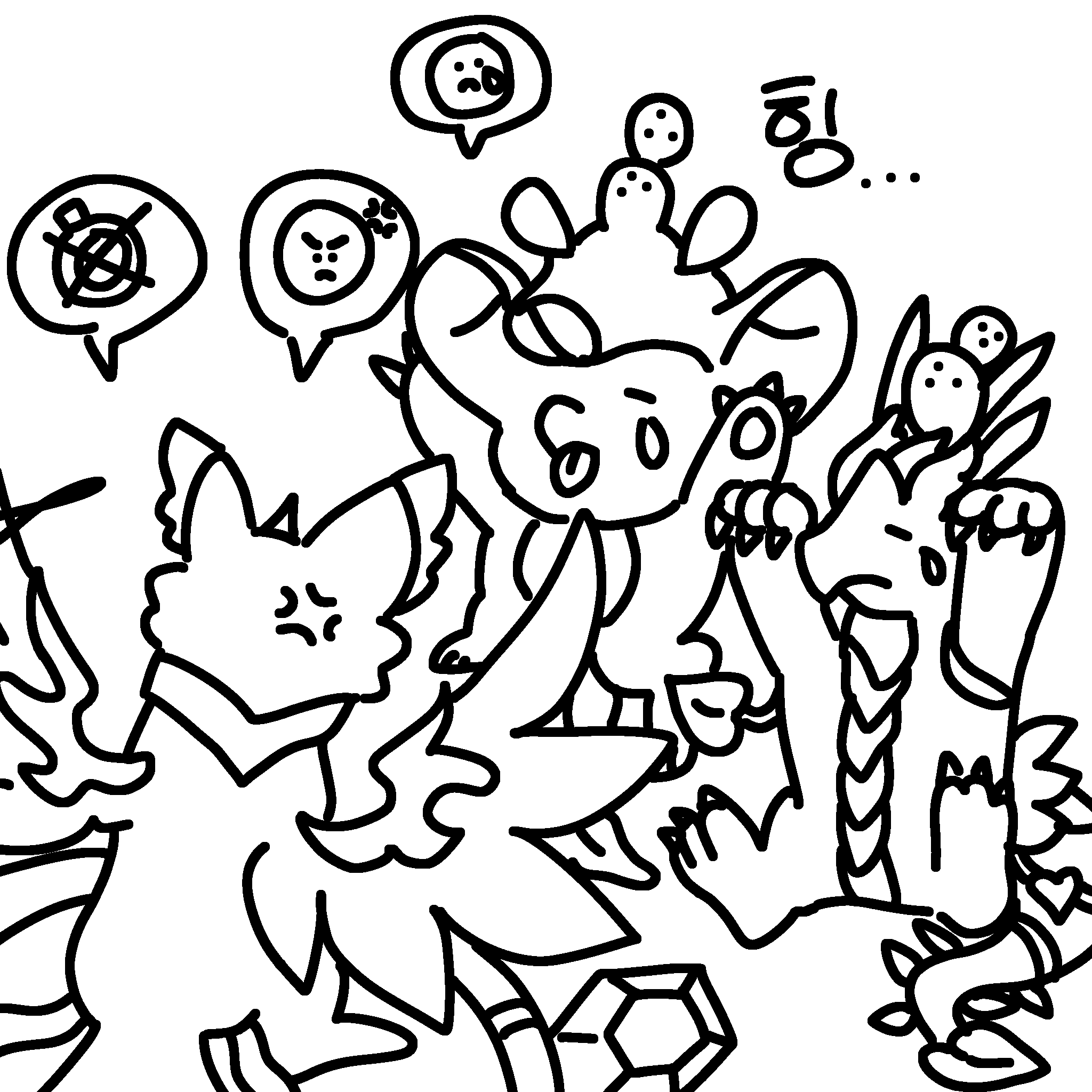 요정버섯 드래곤이랑 카모플라쥬가 혼나는 게 귀여워서 한 번 낙서해봤습니다ㅎㅎ