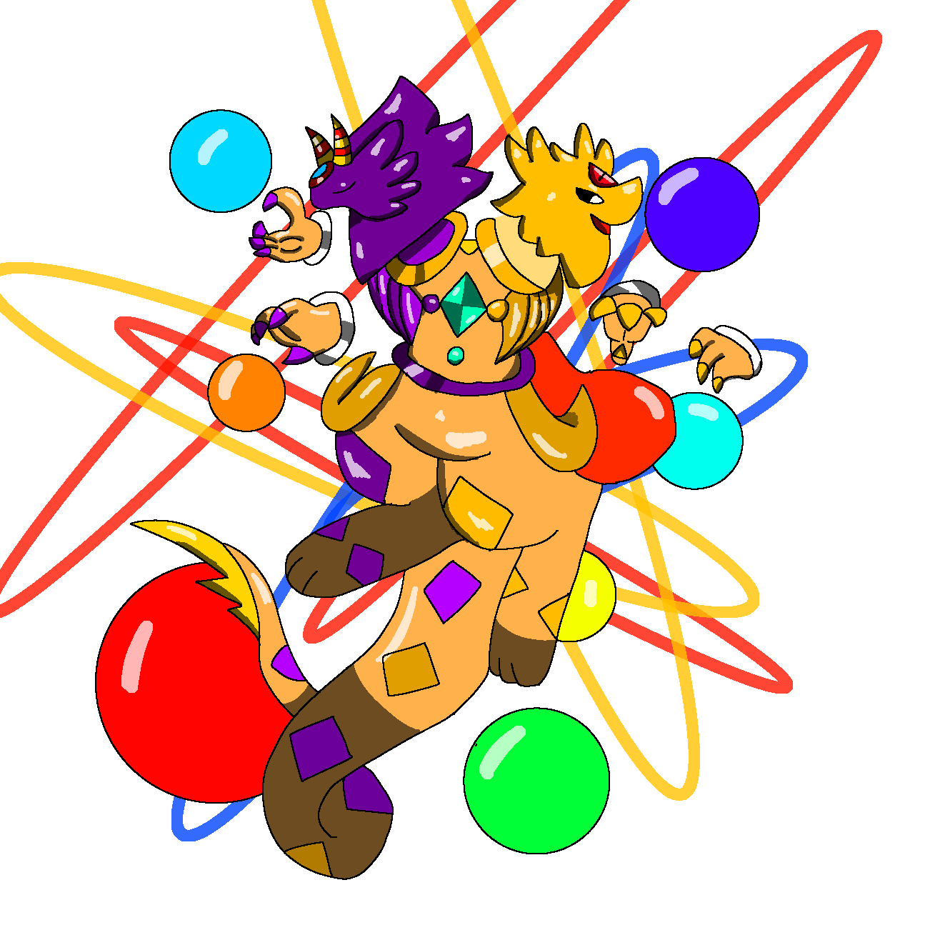 신×세계×고리×선과 악/노랑&보라/한마디/사자 같은 모습으로 만들어주세요!