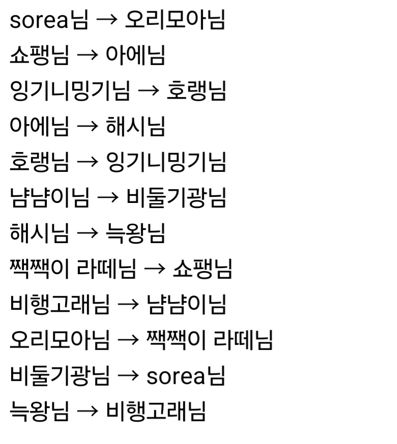 비행고래님 → 냠냠이님
