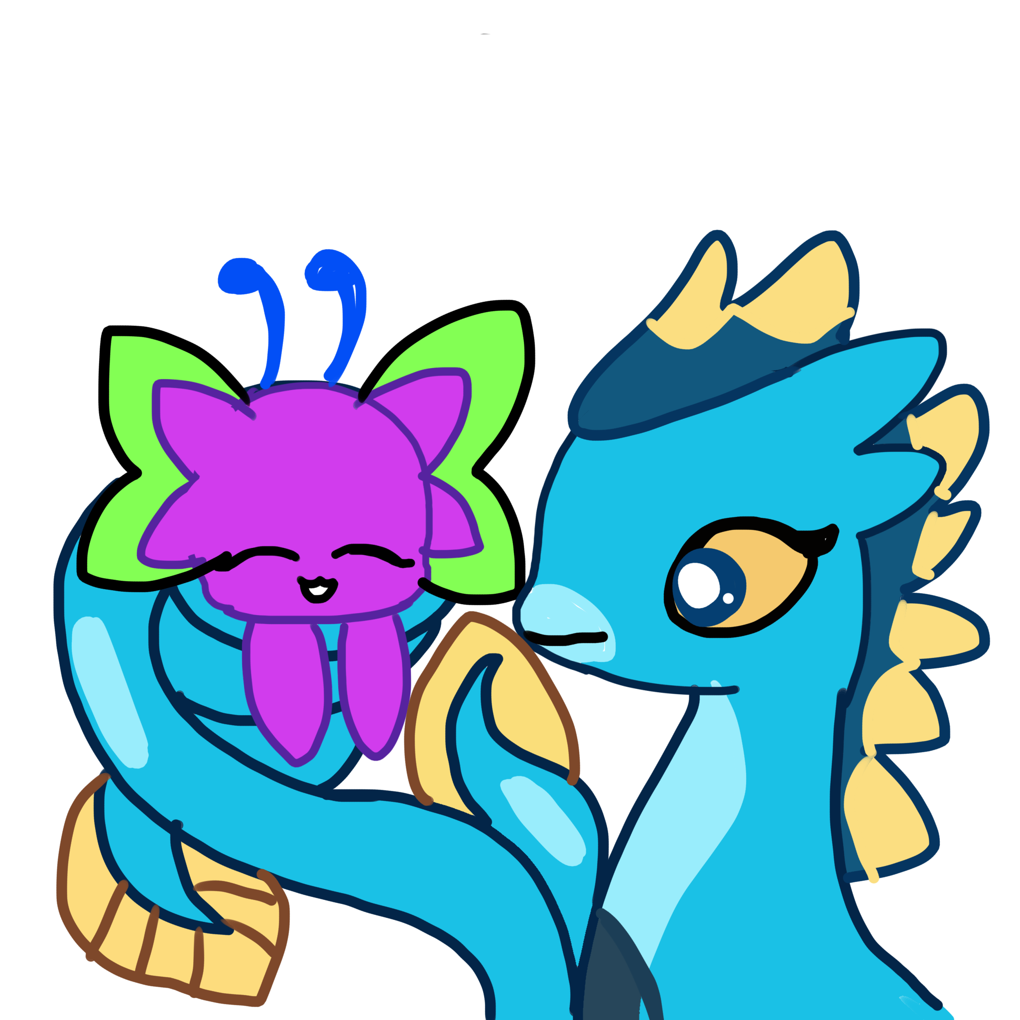 테일이가 물고기드래곤인 네시해치를 감싸주었습니다