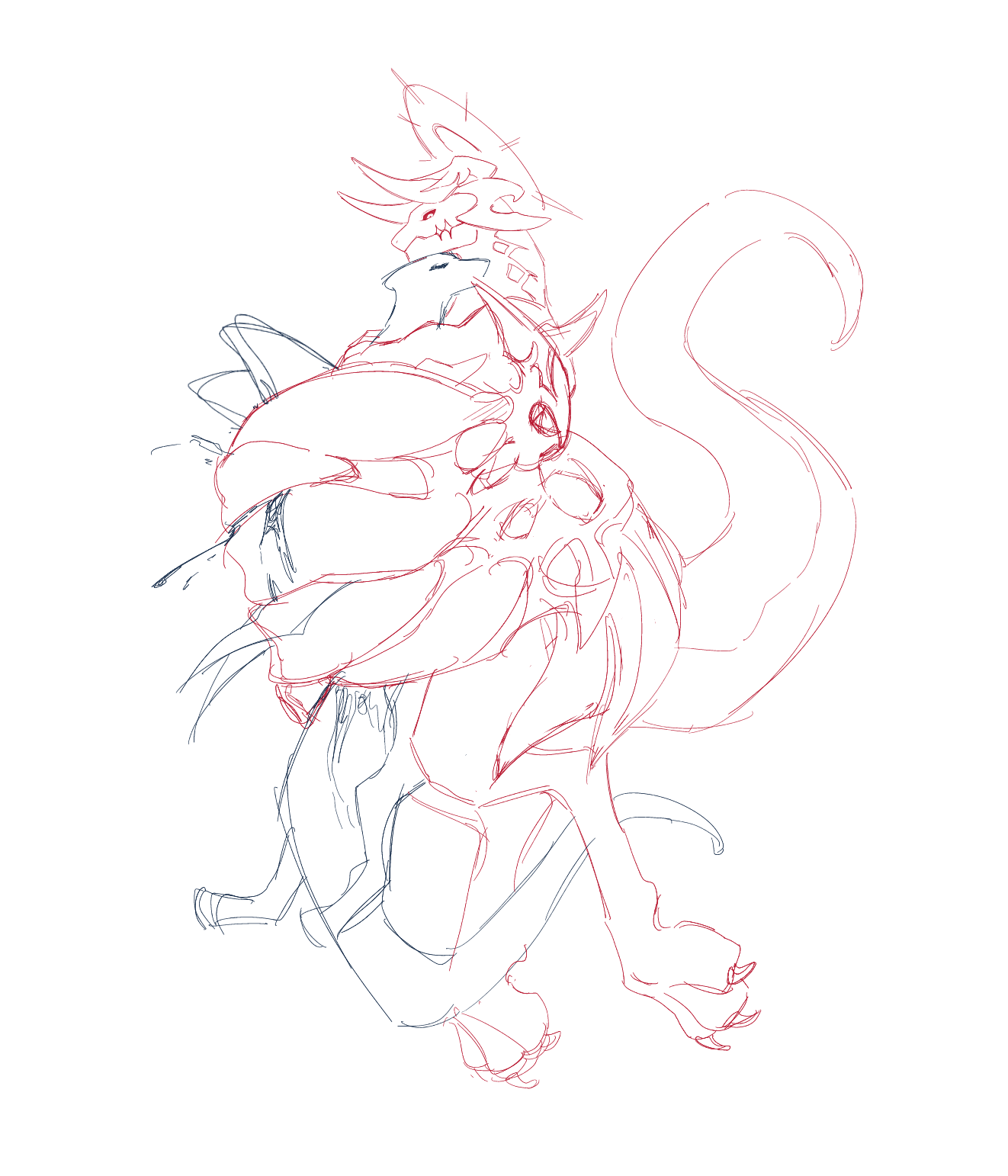 낙서이자 러프 언젠가 완성… 파란색 쪽은 특정 개체를 생각하고 그리진 않음 그냥 단역